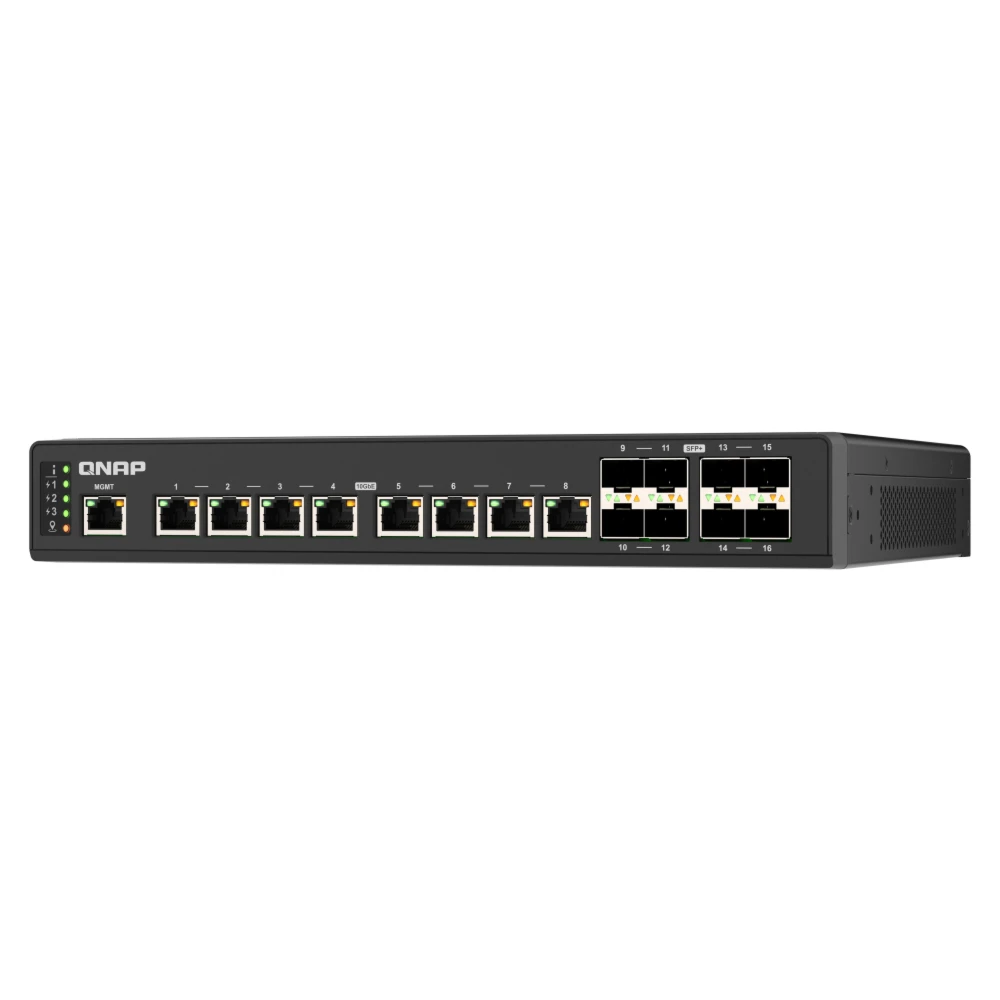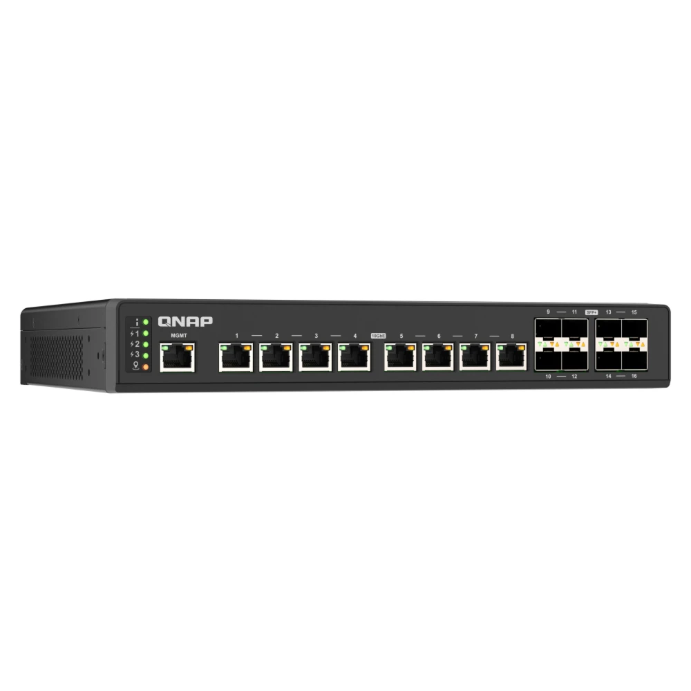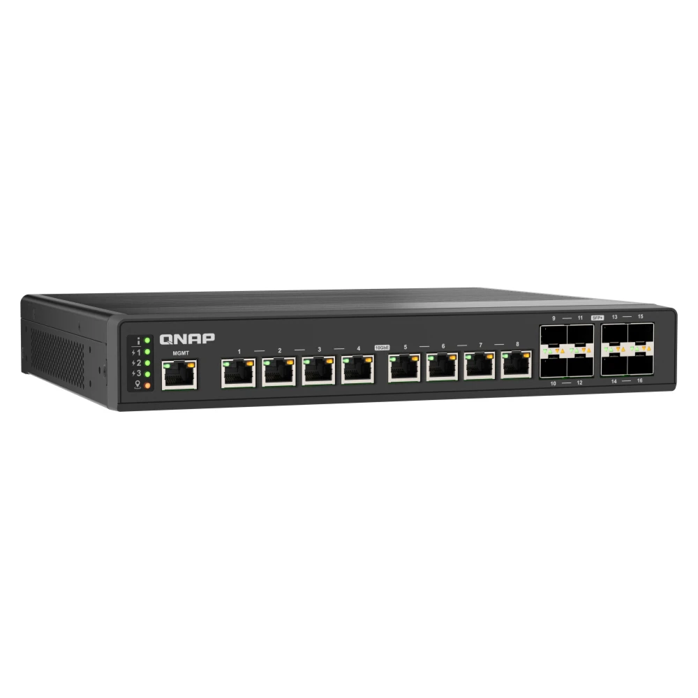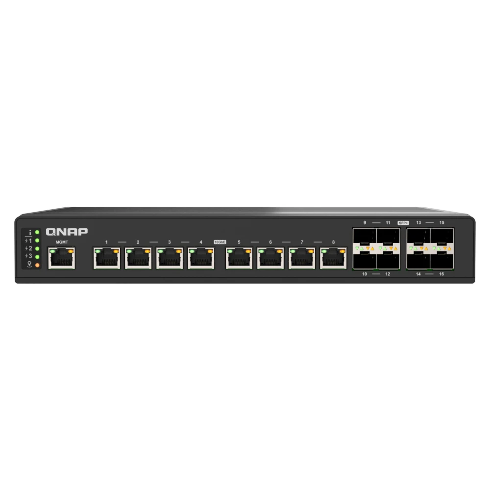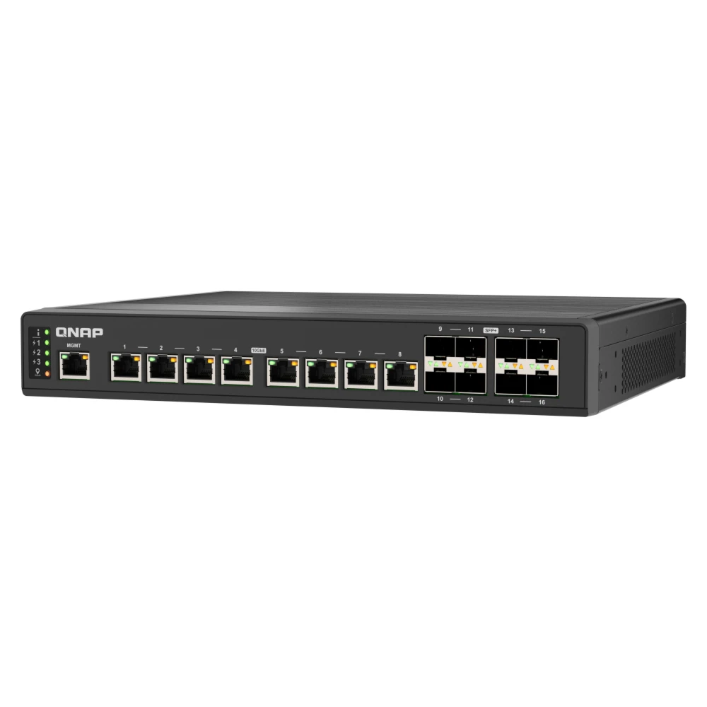 QNAP QSW-IM3216-8S8T. Switch type: Managed. Basic switching RJ-45 Ethernet ports type: 10G Ethernet (100/1000/10000), Basic switching RJ-45 Ethernet ports quantity: 8, Console port: RJ-45. MAC address table: 16000 entries, Switching capacity: 320 Gbit/s. Networking standards: IEEE 802.11w, IEEE 802.1Q, IEEE 802.1ab, IEEE 802.3, IEEE 802.3ab, IEEE 802.3ad, IEEE 802.3ae,.... Power connector: Terminal block (6-pin). Rack mounting