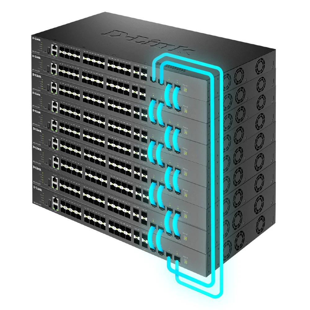 Up to 9 units per stack for max. up to 252 10 Gigabit ports. Provide 200 Gbps physical stacking bandwidth. Long-distance stacking over fiber.