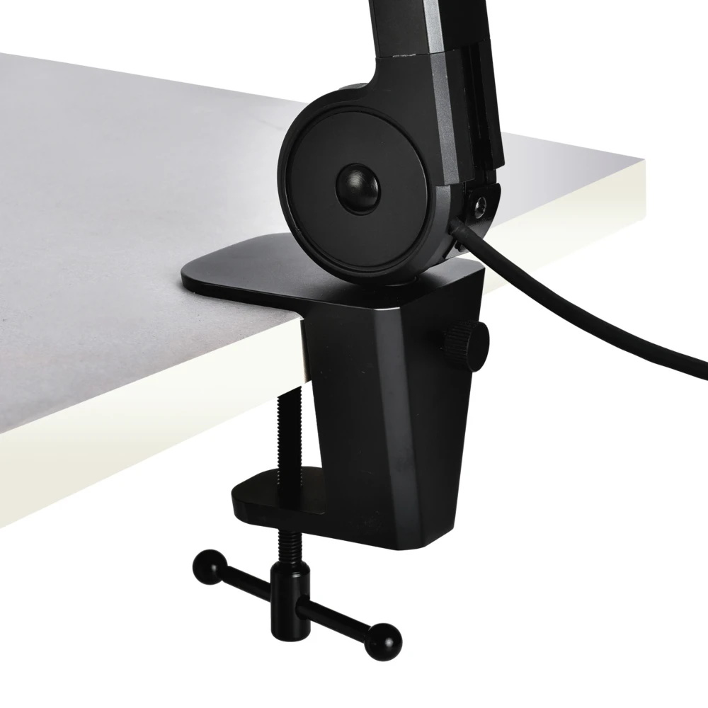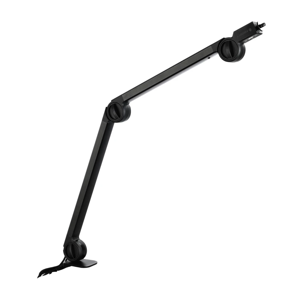 Microphone arm with integrated USB hub CHERRY MA 6.0 UNI USB. Product type: Desk stand, Brand compatibility: Cherry, Product colour: Black. Weight: 800 g A microphone arm provides you with the space necessary to be able to speak into the microphone while actively using the mouse and/or keyboard. For this reason, the MA 6.0 UNI USB is especially recommended for live streams, gaming videos or video conferences. It is made entirely of aluminum and can be conveniently attached via a table clamp. Thanks to its joints, the microphone holder can be easily adjusted and the microphone optimally positioned.