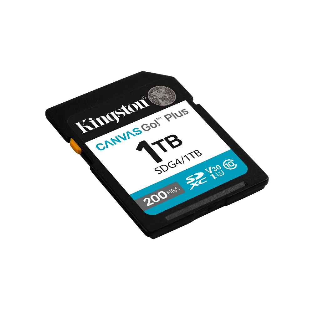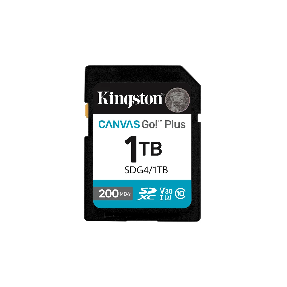 Kingston Technology Canvas Go! Plus 1TB SDXC Canvas Go Plus Gen4 200MB/s C10 UHS-I U3 V30. Capacity: 1 TB, Flash card type: SDXC, Flash memory class: Class 10, Internal memory type: UHS-I, Read speed: 200 MB/s, Write speed: 160 MB/s, UHS Speed Class: Class 3 (U3), Video Speed Class: V30. Product colour: Black