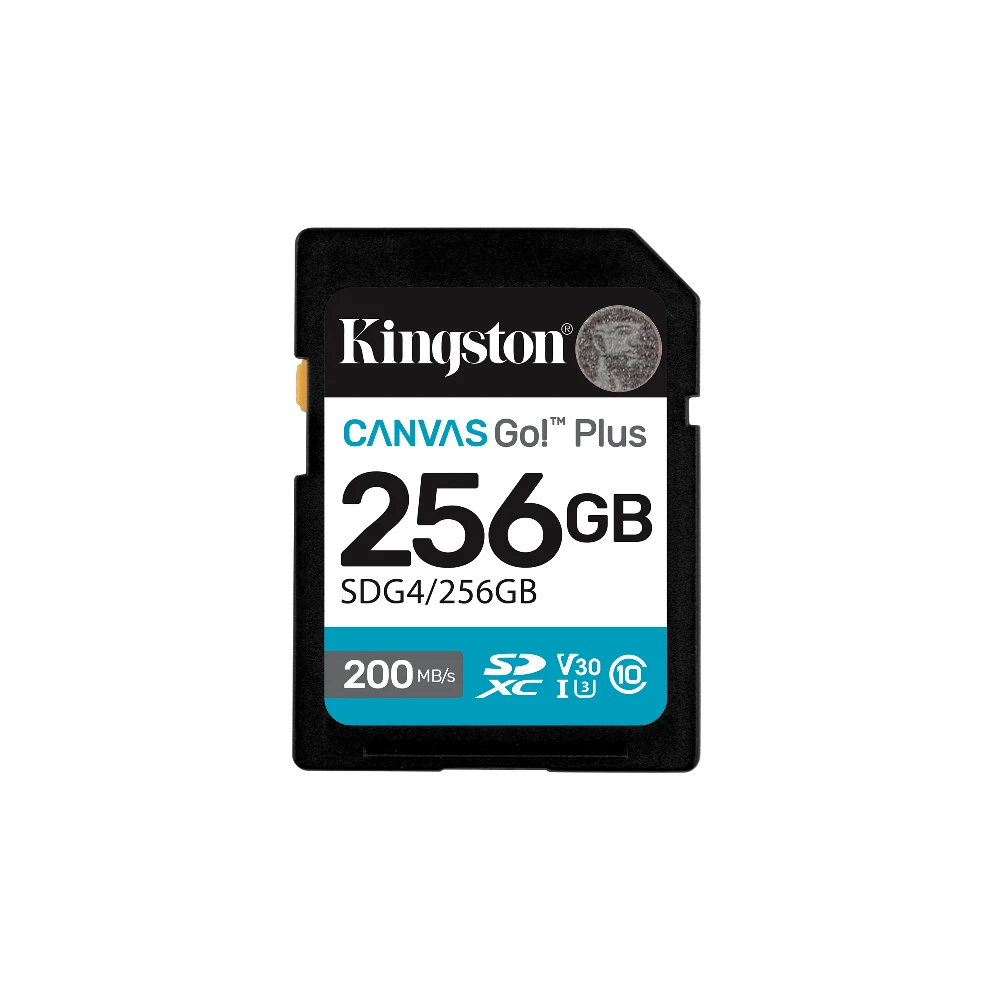 Kingston Technology Canvas Go! Plus 256GB SDXC Canvas Go Plus Gen4 200MB/s C10 UHS-I U3 V30. Capacity: 256 GB, Flash card type: SDXC, Flash memory class: Class 10, Internal memory type: UHS-I, Read speed: 200 MB/s, Write speed: 160 MB/s, UHS Speed Class: Class 3 (U3), Video Speed Class: V30. Product colour: Black