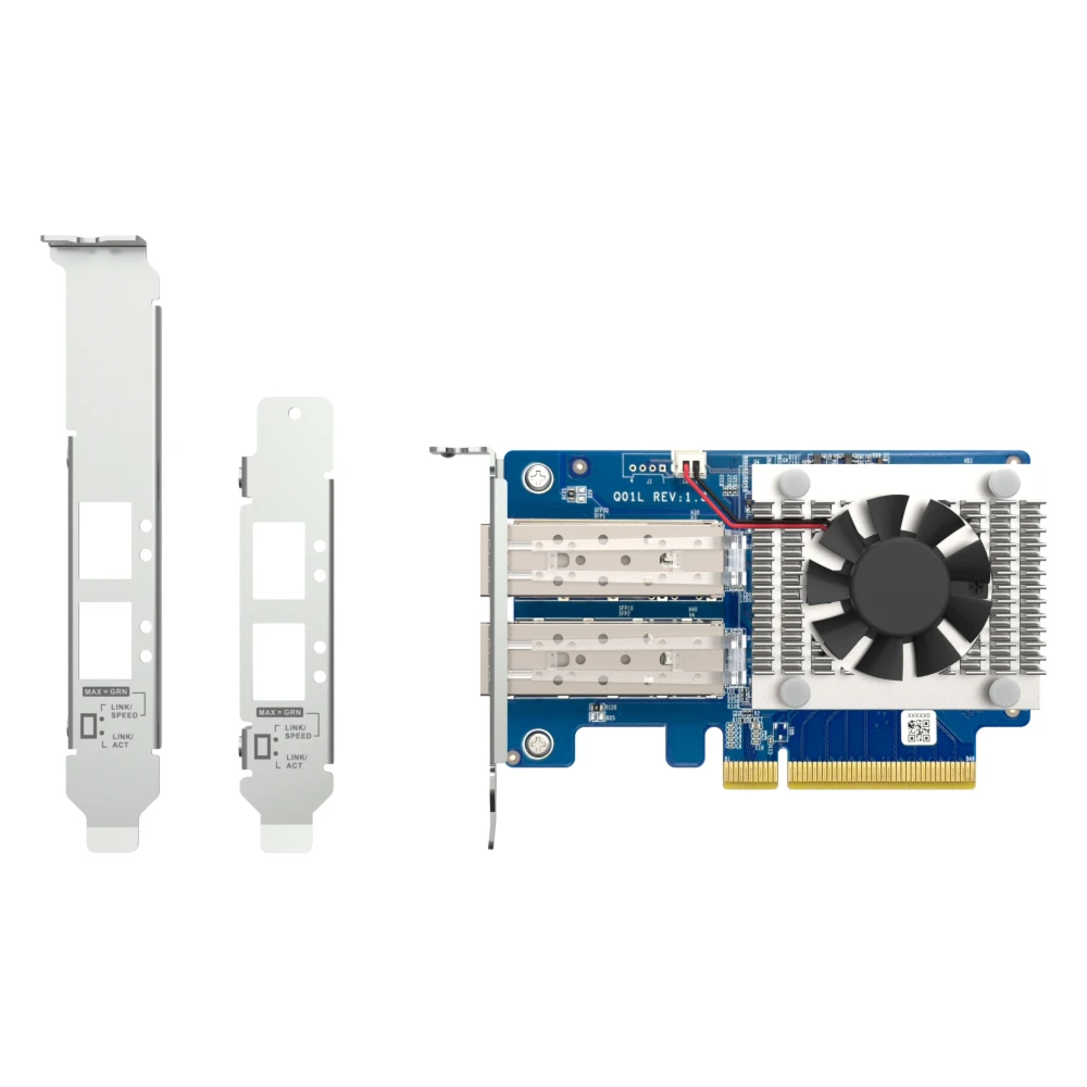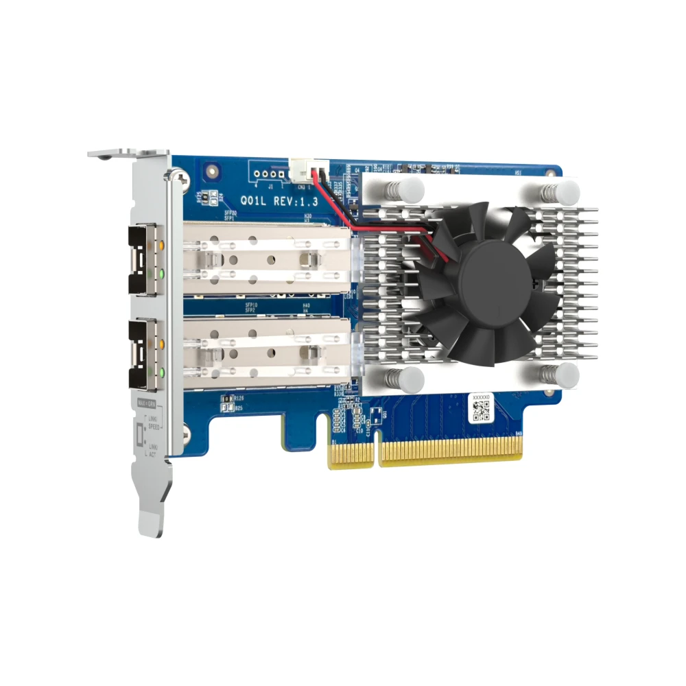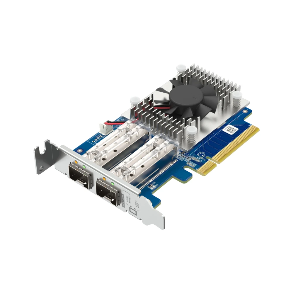 QNAP Dual-port, 10GbE SFP+ network expansion card. Internal. Connectivity technology: Wired, Host interface: PCI Express, Interface: Fiber. Maximum data transfer rate: 10 Mbit/s. Product colour: Multicolour