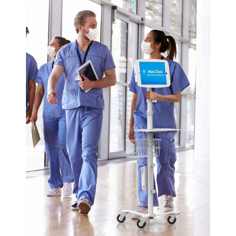 Compulocks iPad 10.9" 10th Gen Space Enclosure Medical Rolling Cart White. Type: Multimedia cart, Product colour: White, Recommended usage: Tablet. Height: 1500 mm, Height adjustment: 43 cm, Base width: 38.9 cm. Quantity per pack: 1 pc(s). Number of keys included: 2 pc(s)