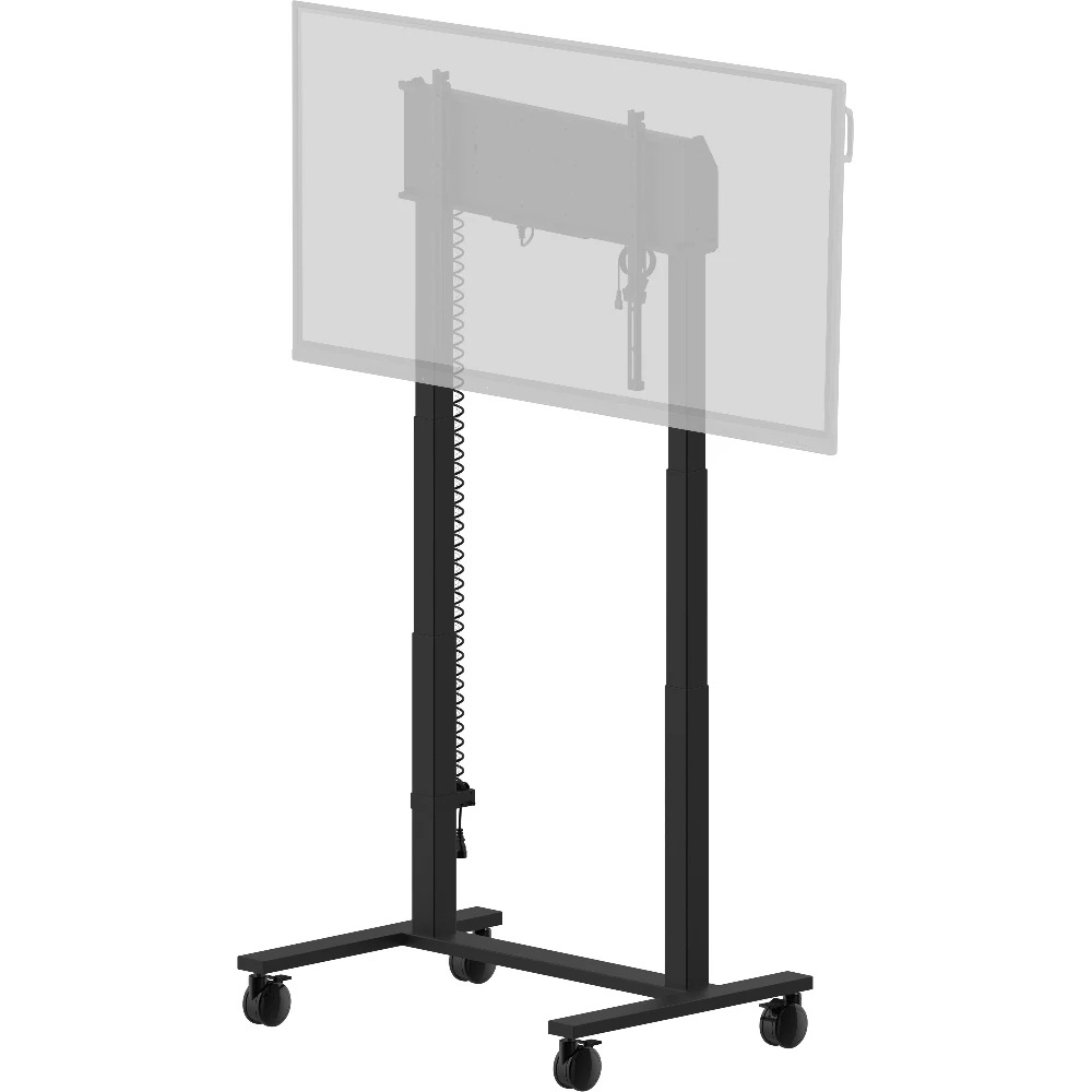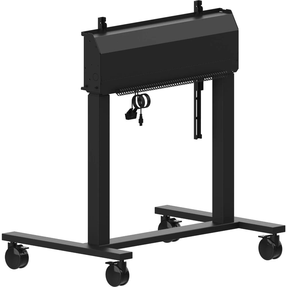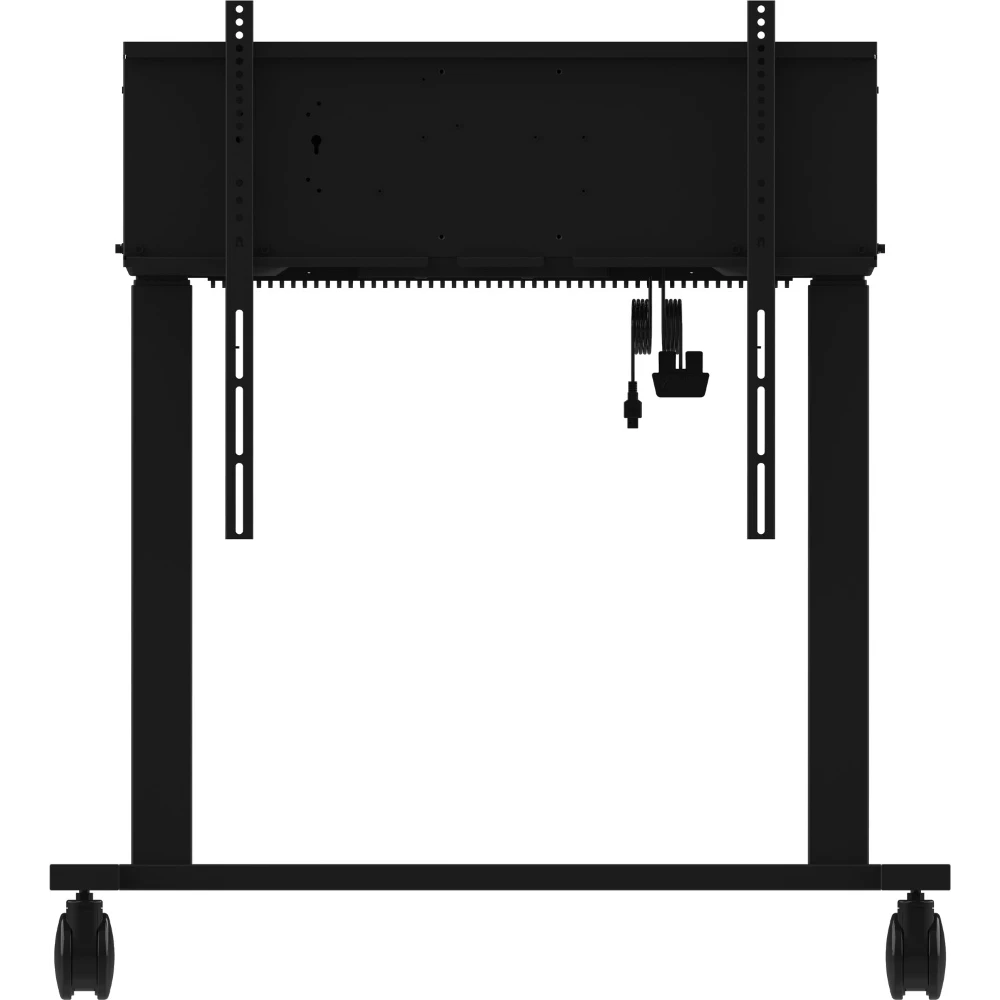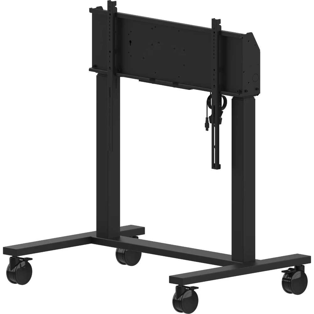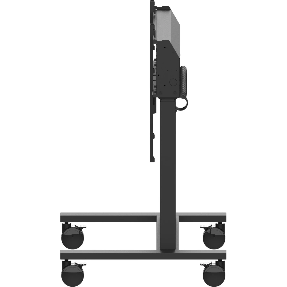 This mobile stand with electrical 950mm height adjustment provides a continuous and silent adjustment, controlled directly from a compatible iiyama TE SERIES display or with the attached control pad. The 4-inch muting castor omni directional wheels make it easy and save to move the car around. The integrated screen bracket supports most VESA patterns, making this floor lift suitable for every display up to 98” with a max. weight of 120kg.