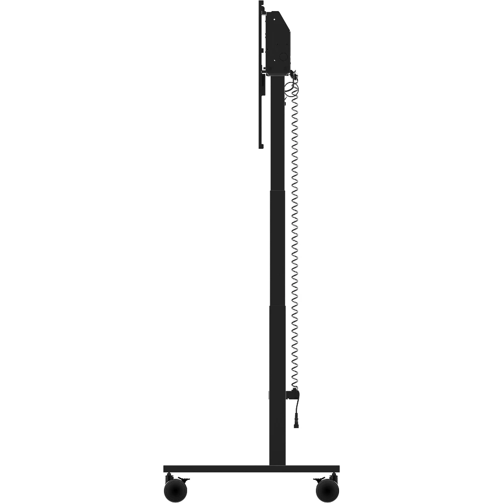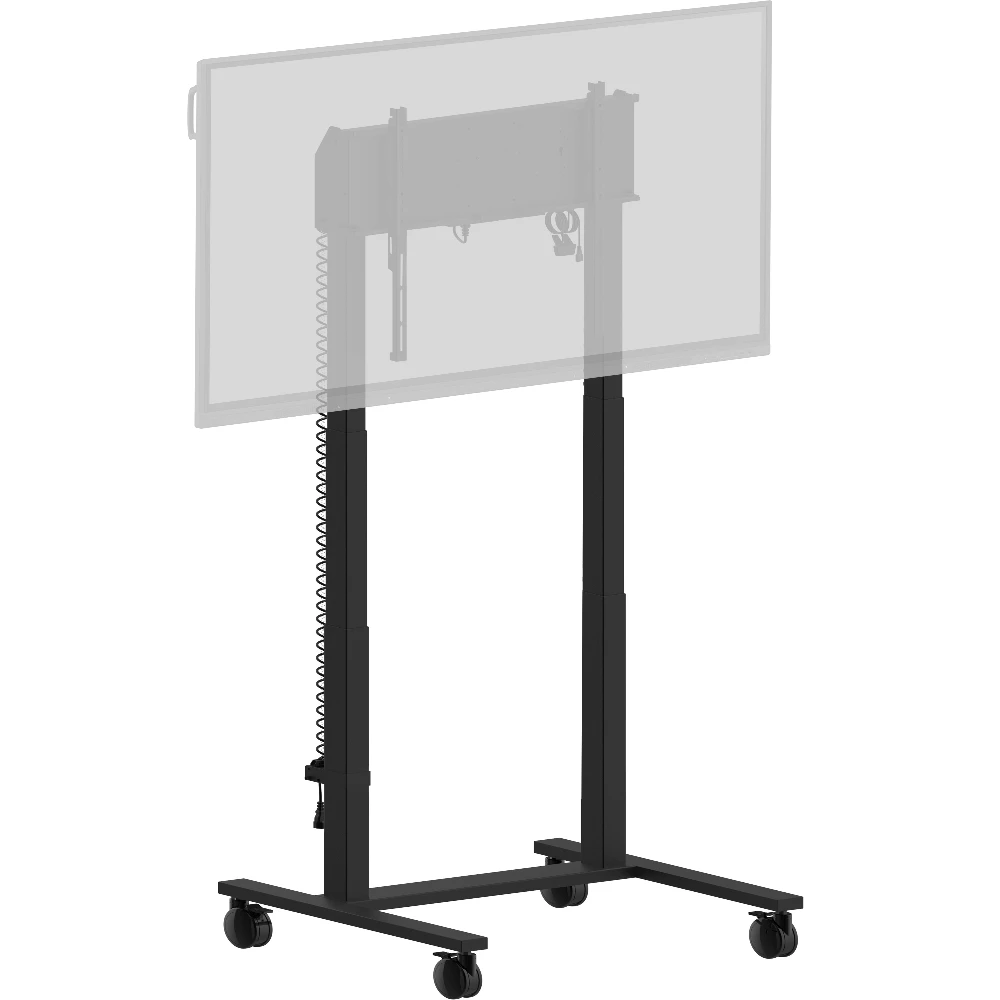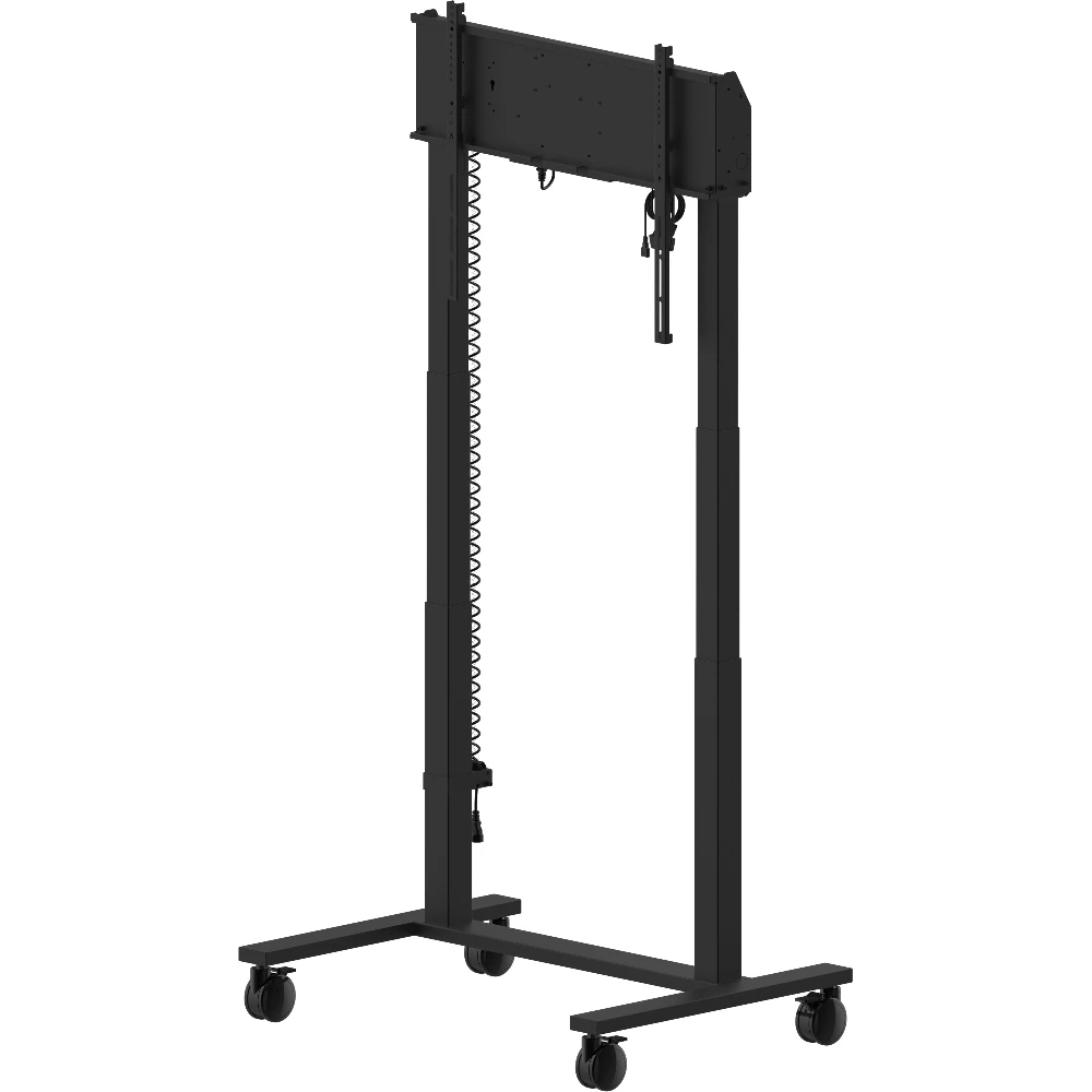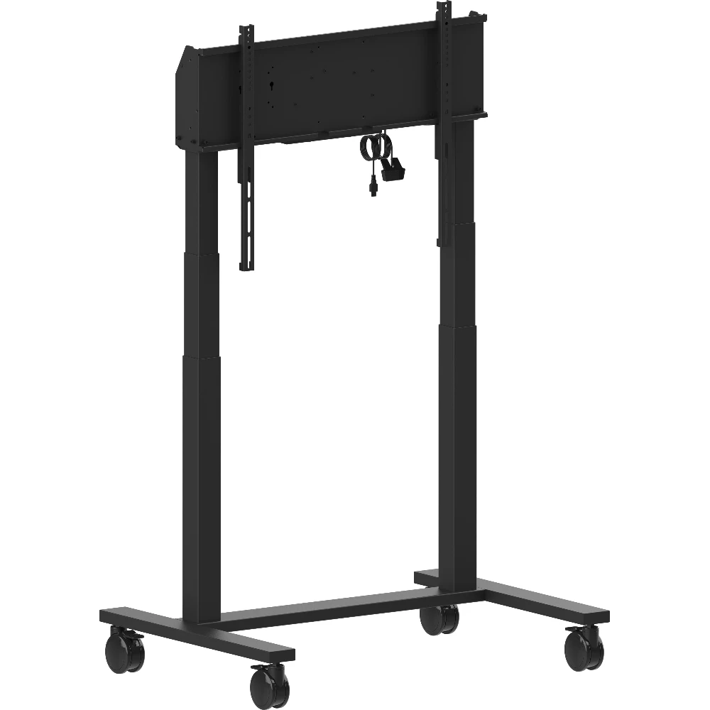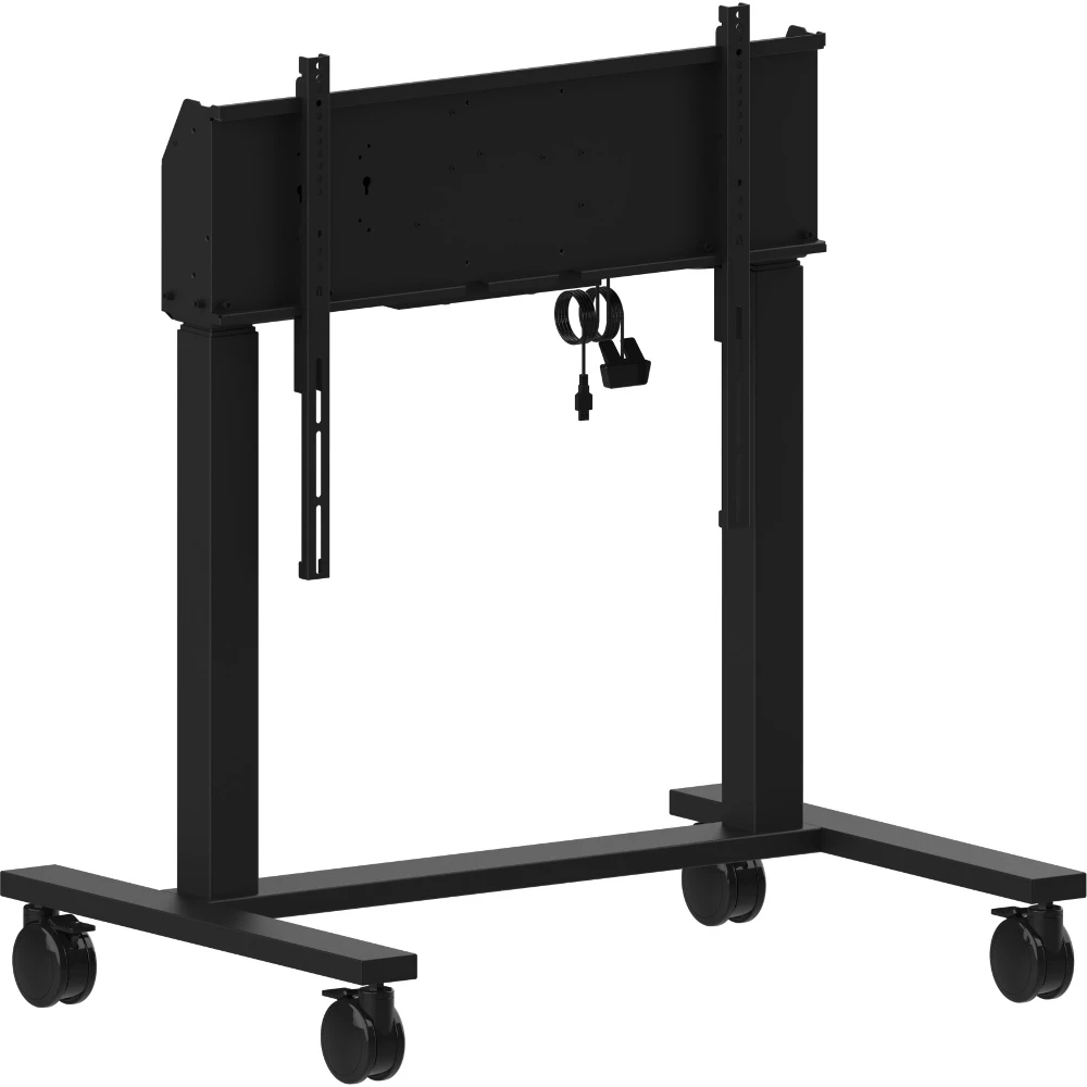 This mobile stand with electrical 950mm height adjustment provides a continuous and silent adjustment, controlled directly from a compatible iiyama TE SERIES display or with the attached control pad. The 4-inch muting castor omni directional wheels make it easy and save to move the car around. The integrated screen bracket supports most VESA patterns, making this floor lift suitable for every display up to 98” with a max. weight of 120kg.