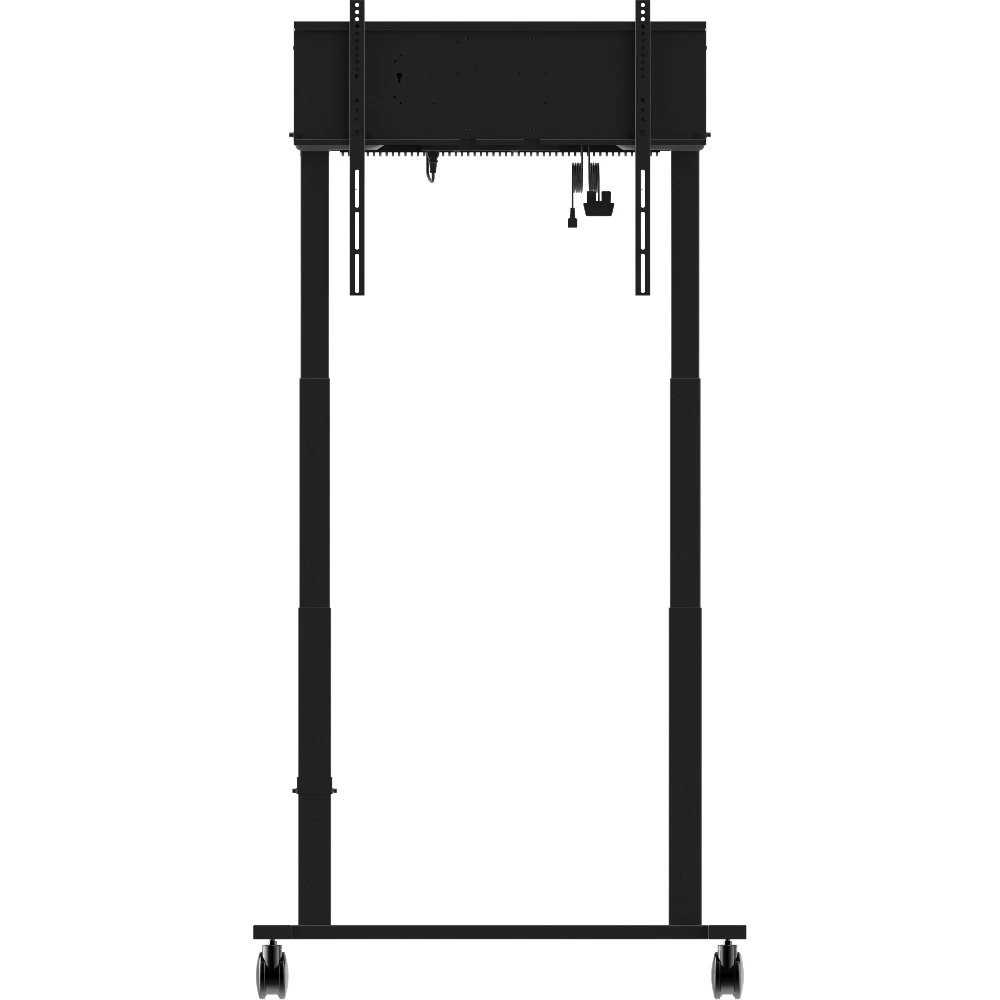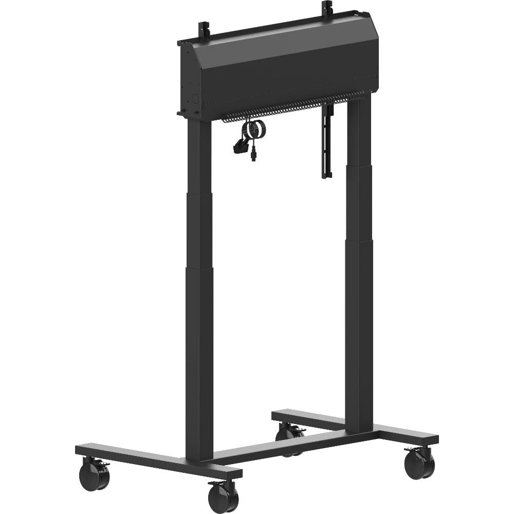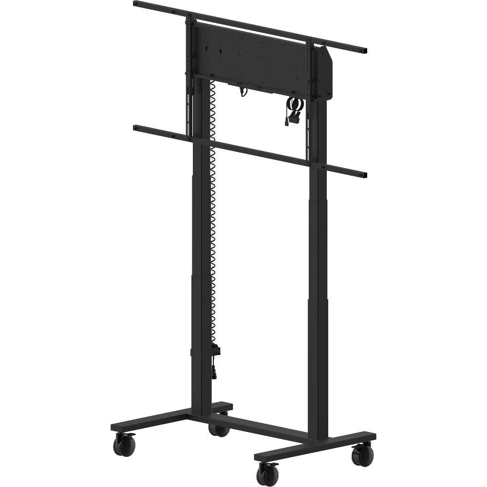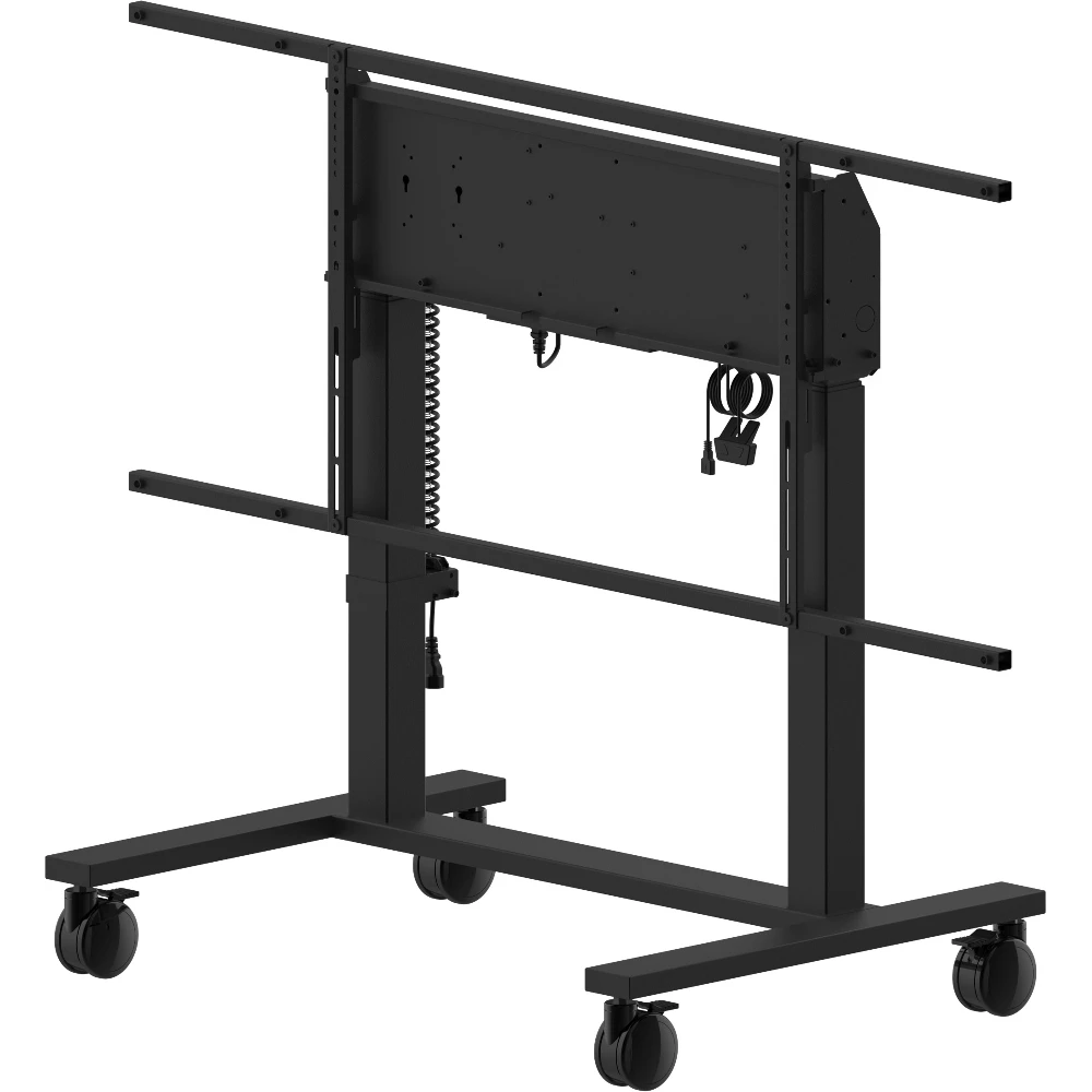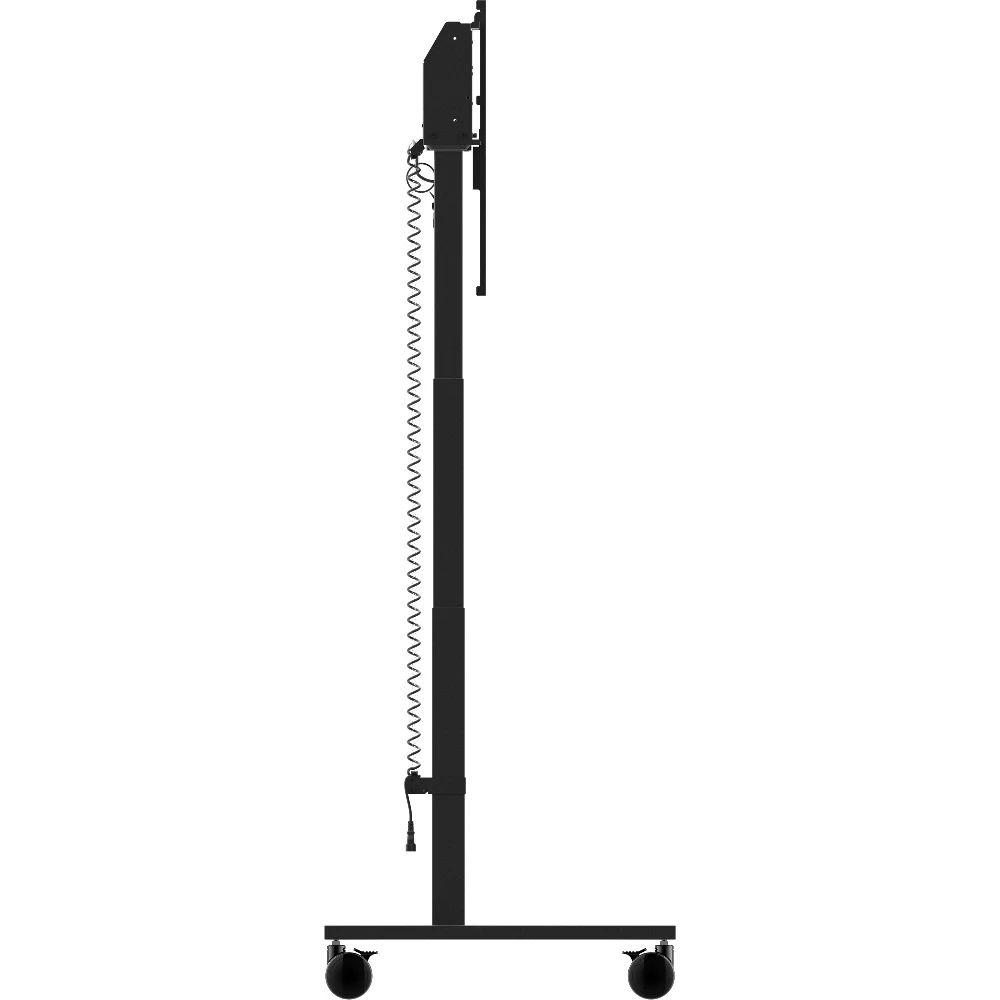 This mobile stand with electrical 950mm height adjustment provides a continuous and silent adjustment, controlled directly from a compatible iiyama TE SERIES display or with the attached control pad. The 4-inch muting castor omni directional wheels make it easy and save to move the car around. The integrated screen bracket supports most VESA patterns, making this floor lift suitable for every display up to 98” with a max. weight of 120kg.