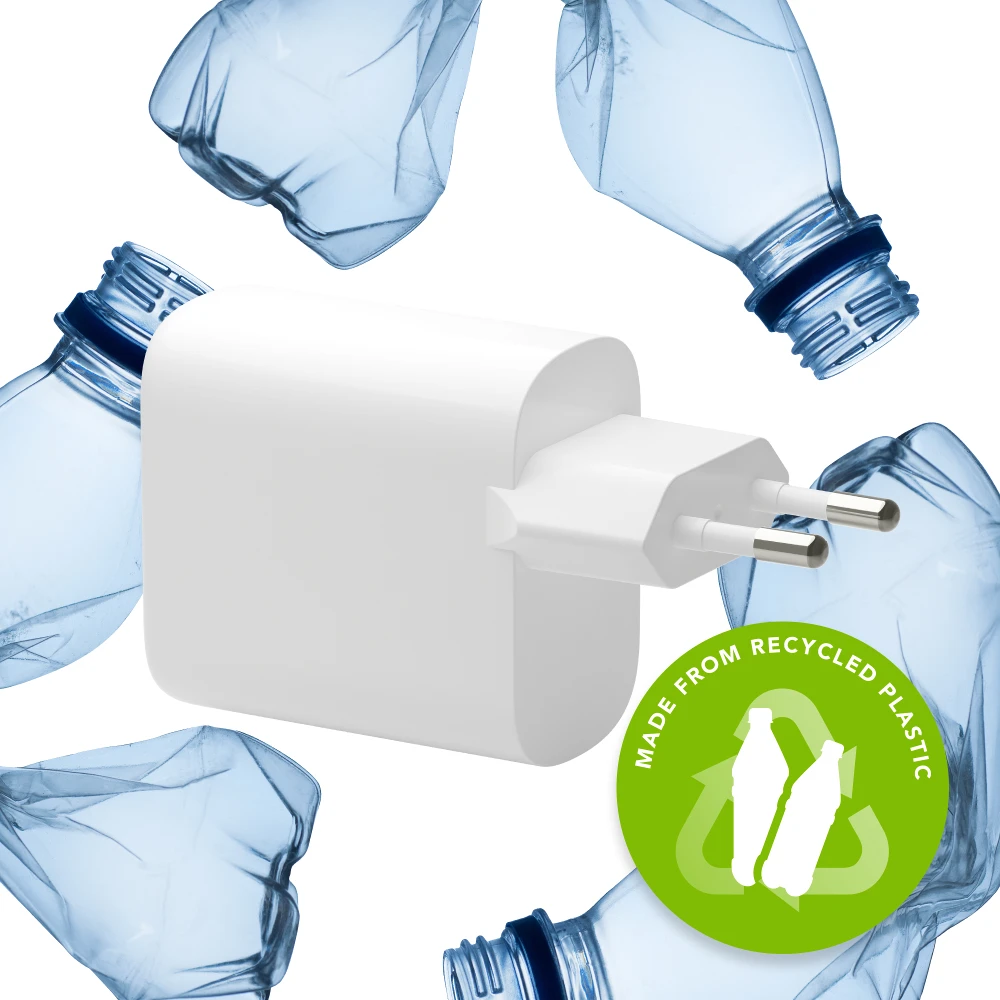 Unlike most chargers dbramante1928 chargers are made with 100% recycled plastic and is 100% recyclable.