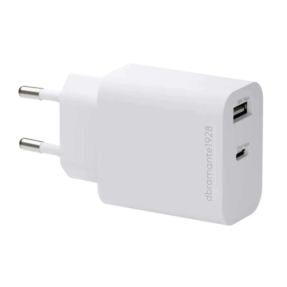 dbramante1928 CH25EUWH7244. Charger type: Indoor, Power source type: AC, Charger compatibility: Universal. Input voltage: 110 - 240 V. USB 2.0 ports quantity: 1, USB Type-C ports quantity: 1. Product colour: White