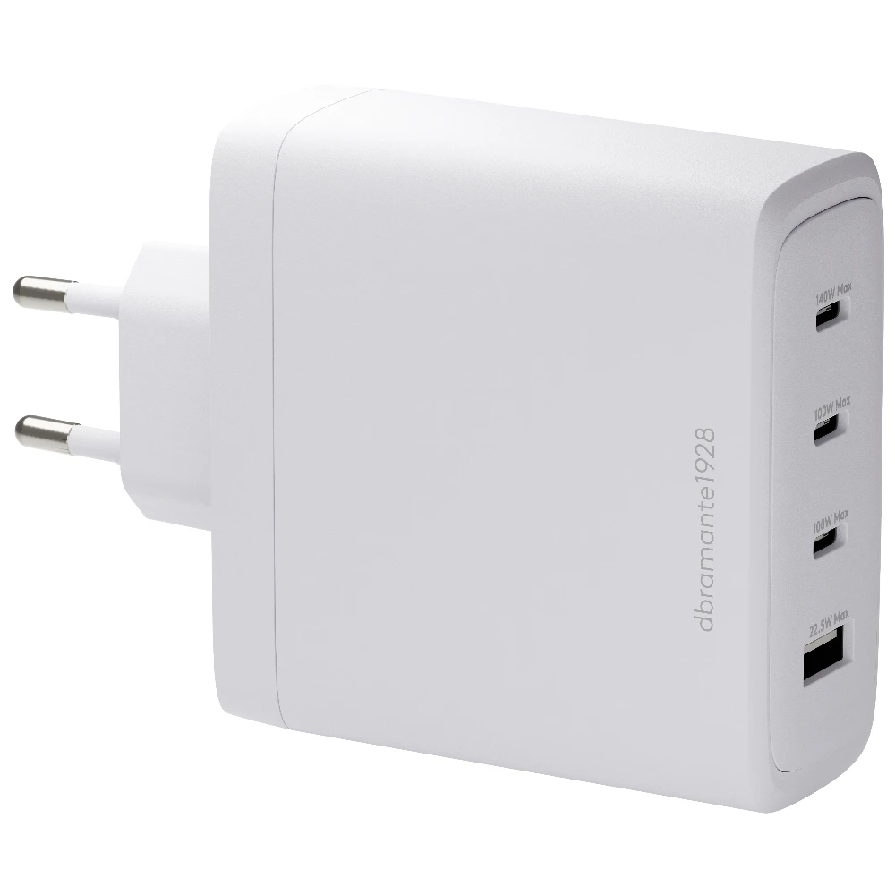 dbramante1928 re-charge IT - EU W. Charger - 3xUSB-C 140W + 1xUSB-A - W. Charger type: Indoor, Power source type: AC, Charger compatibility: Laptop, Smartphone, Tablet, USB Type-C ports quantity: 3, Fast charging. Product colour: White