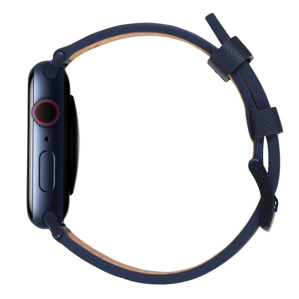 Copenhagen - Watch Strap 44mm - Navy Blue dbramante1928 Copenhagen - Watch Strap 44mm - Navy Blue. Product type: Band, Compatible device type: Smartwatch, Product colour: Navy. Width: 35 mm, Depth: 7 mm, Height: 165 mm. Quantity per pack: 30 pc(s). Master (outer) case gross weight: 450 g, Master (outer) case length: 240 mm, Master (outer) case width: 210 mm. Quantity outer carton: 30 pc(s) Transforming your Apple Watch SE and Series 1-6 in both 42 & 44 mm into that statement wrist accessory, this is much more than just a stylish strap. Each one is handcrafted from supple full-grain leather and features a traditional metal buckle with custom-fit lugs. Designed in Denmark by a Climate Positive Company, protect your device and the planet with this feature-rich, eco-friendly strap.