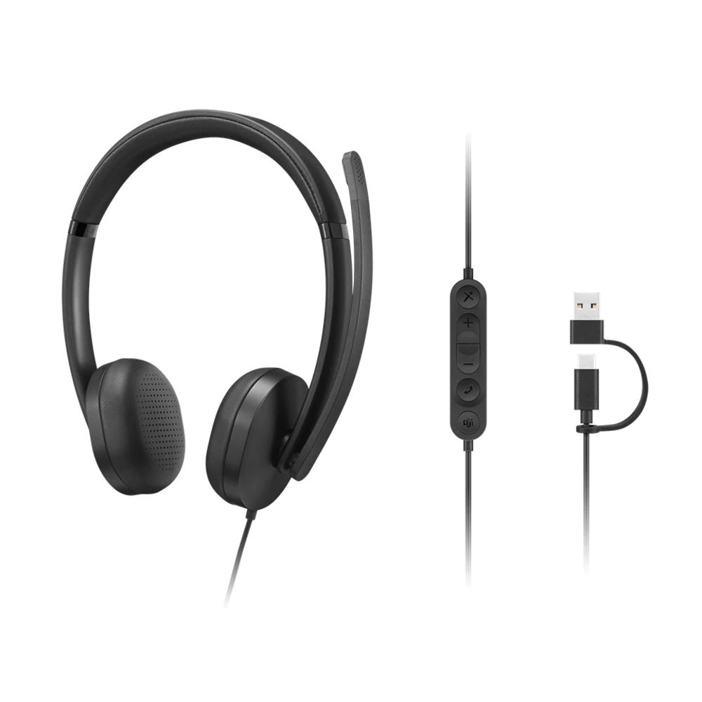 The Lenovo Wired VoIP Headset 5000 is a Teams-certified professional headset that is designed for the workplace. The USB-C plug and USB-A converter make it plug-and-play-compatible with various devices. In addition, it is lightweight, portable and comfortable for all-day use. With the AI noise reduction on the LADM software, this headset delivers excellent noise cancellation in loud environments – making sure you are heard clearly all the time.