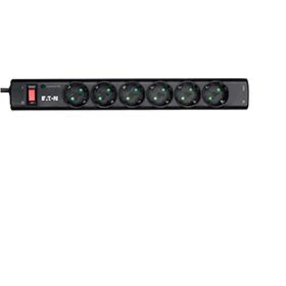 Eaton Protection Strip 6 Tel@ DIN. AC outlets quantity: 6 AC outlet(s), AC outlet types: Type F, Nominal input voltage: 220 - 250 V. Product colour: Black, White, Response time: 0.000001 ms. Cable length: 1 m, Weight: 412 g, Width: 52 mm. Certification: CE
