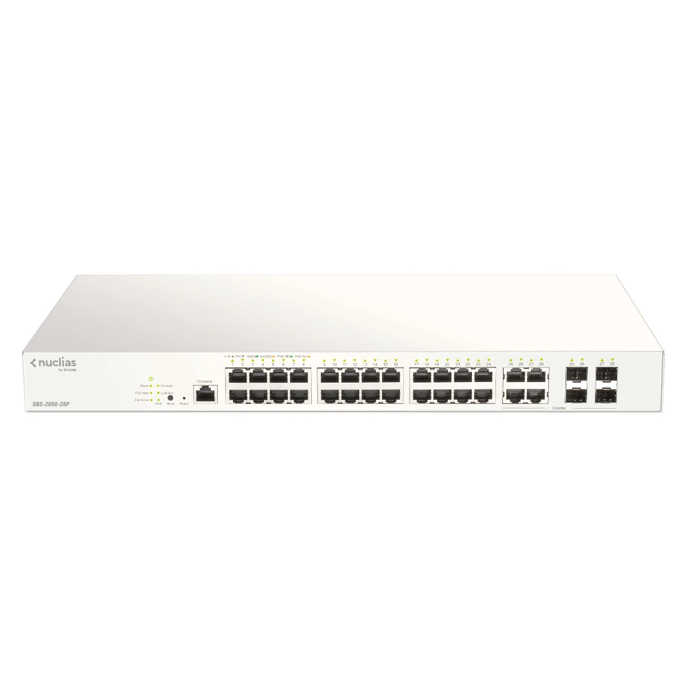 D-Link DBS-2000-28P. Switch type: Managed, Switch layer: L2. Basic switching RJ-45 Ethernet ports type: Gigabit Ethernet (10/100/1000), Basic switching RJ-45 Ethernet ports quantity: 24. Switching capacity: 56 Gbit/s. Networking standards: IEEE 802.3ad, IEEE 802.3at. Power over Ethernet (PoE). Rack mounting