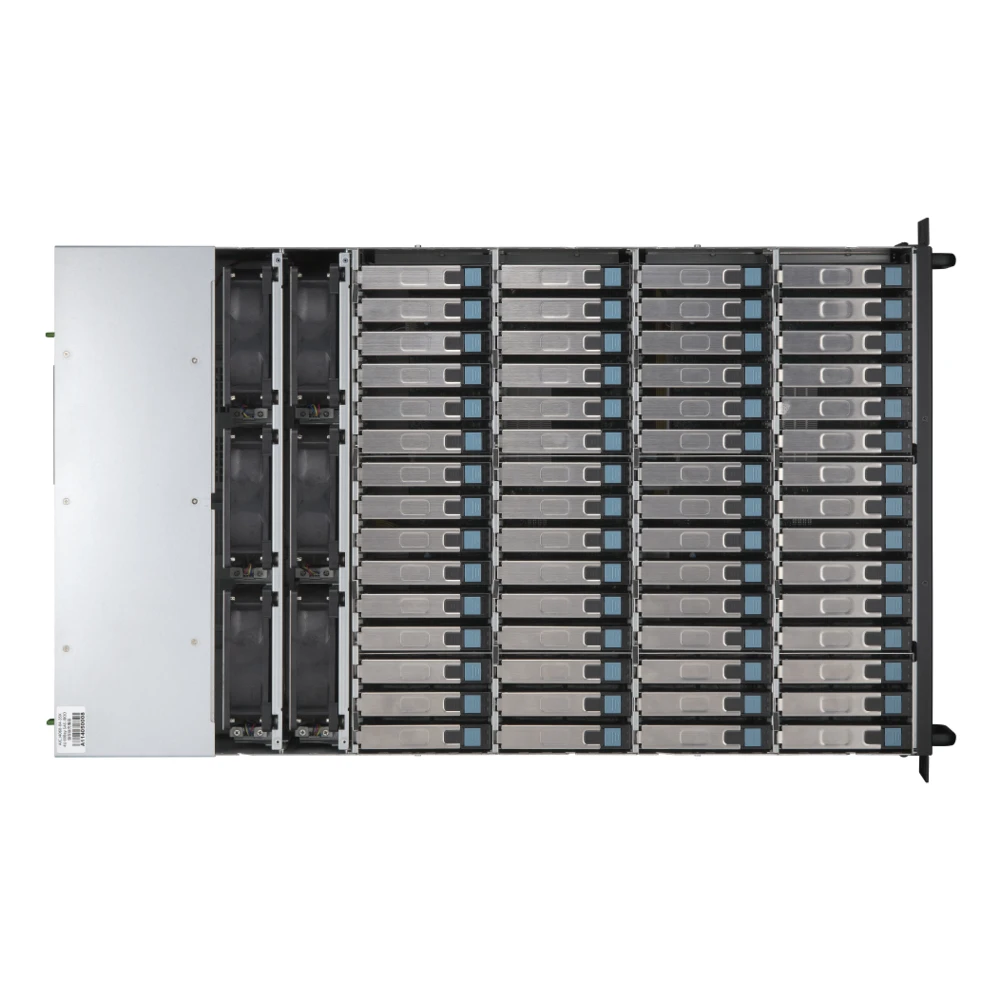 60-bay 4U rackmount SAS 12Gbps JBOD expansion enclosure with SAS expander, 2.5"/3.5" SAS 12Gbps & SAS/SATA 6Gbps drives, 4 x SFF-8644 Mini-SAS HD ports, redundant PSU, with rail kit.