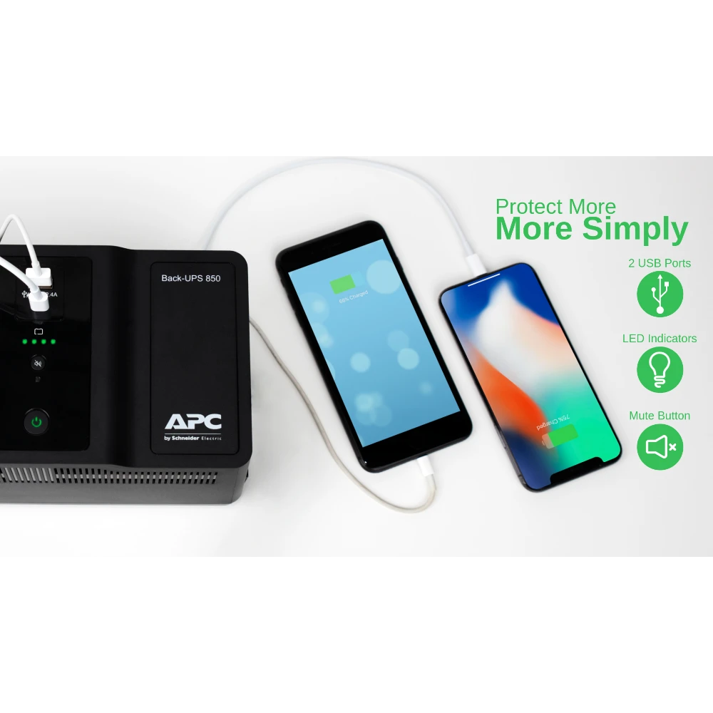 APC Back-UPS 850VA 230V USB Type-C and A charging ports, Standby (Offline), 0.85 kVA, 520 W, Sine, 220 V, 230 V