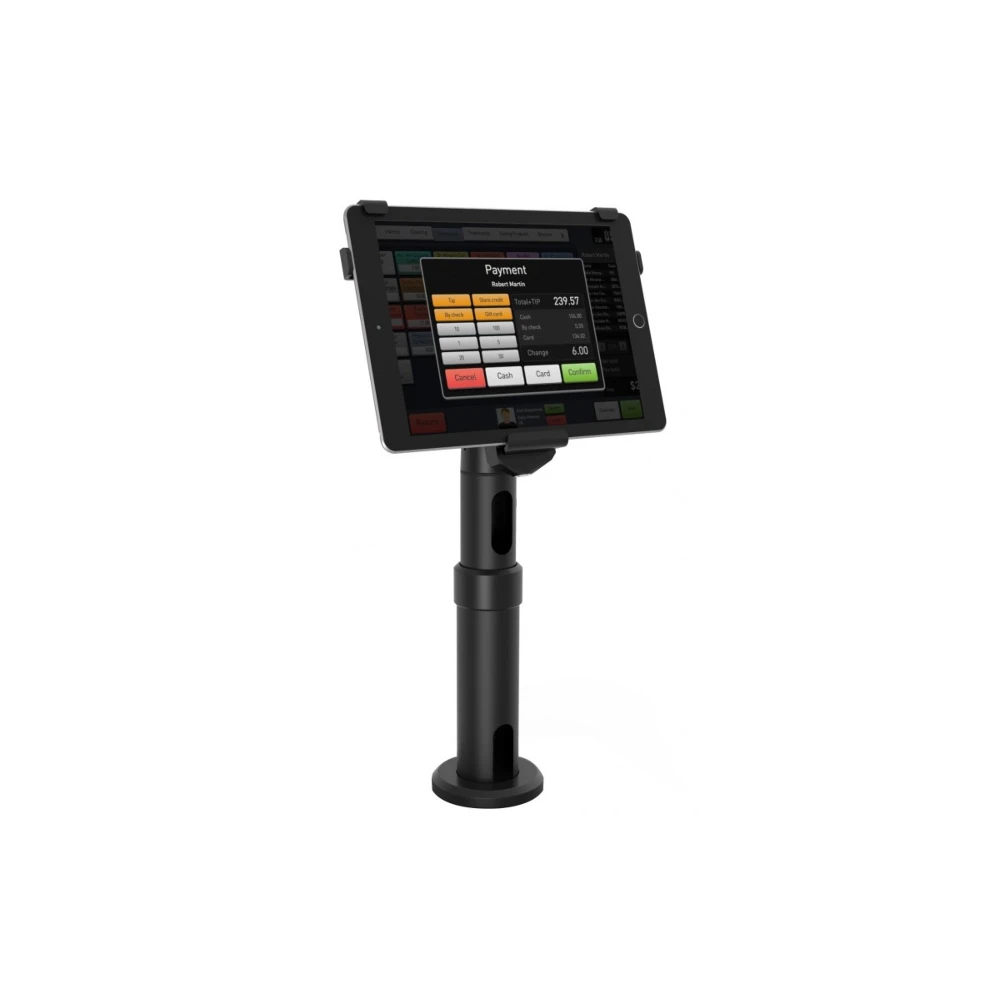 The V-Bracket iPad Kiosk is a robust and secure solution for your business’ mobile POS system. The intuitively designed stand has a rotating and swiveling head and adjustable height pole, making your iPad POS system easy to use and accessible. The pole stand has through wire design for cable management to keep your counter-top clean from clutter. Impress your customers with the V-Bracket Stand and keep them (and your employees) happy with how easy it is to use.