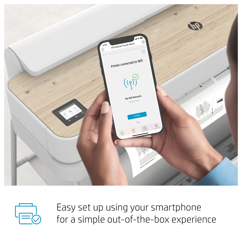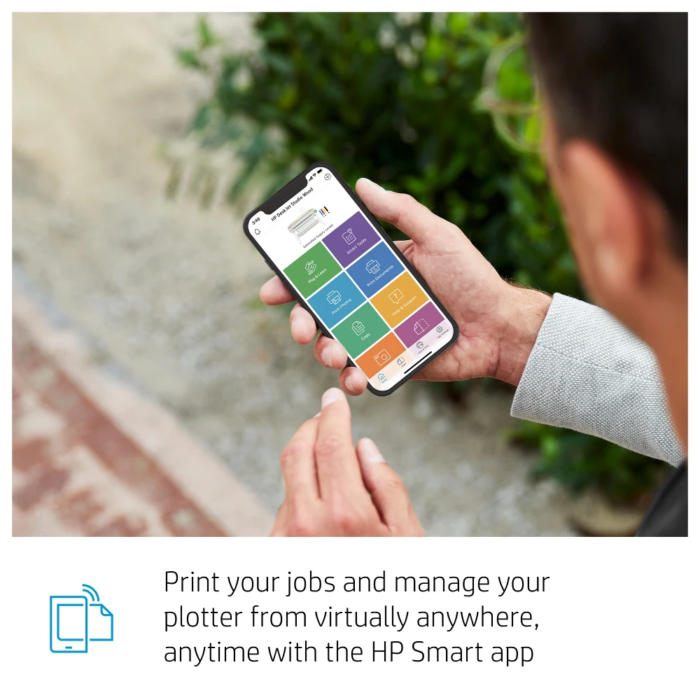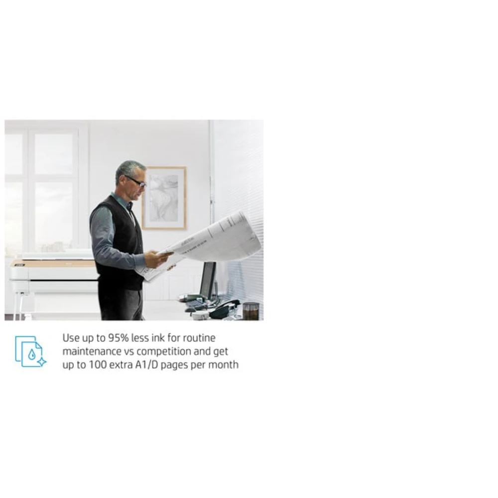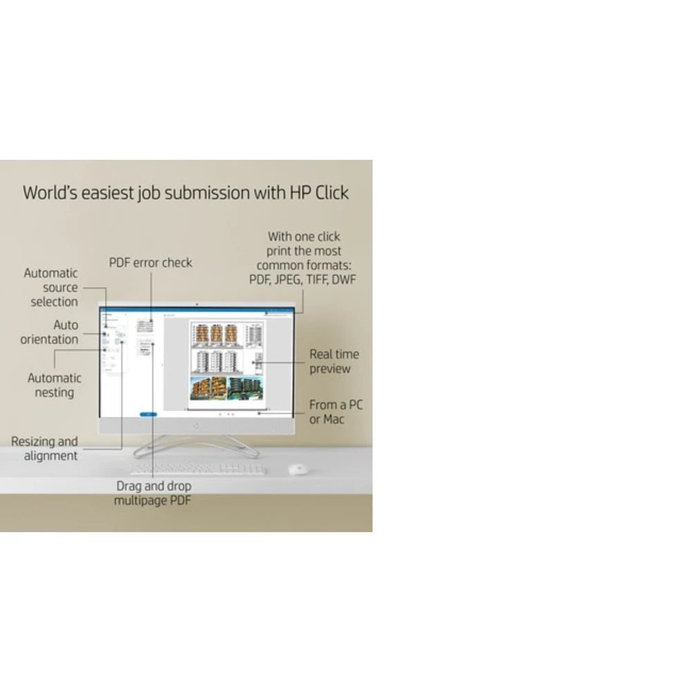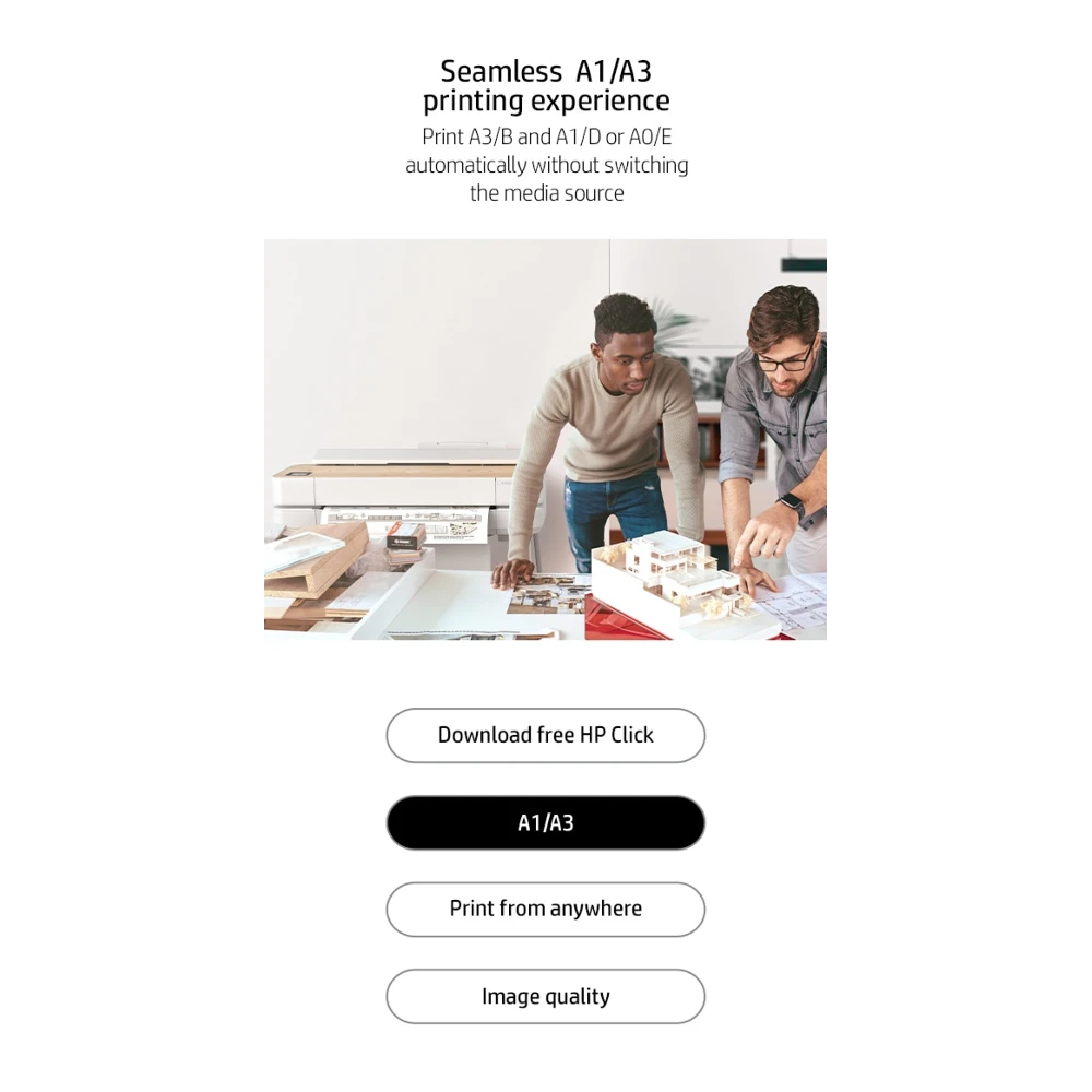 DesignJet Studio 24-in Printer HP Designjet Studio 24-in Printer. Print technology: Thermal inkjet, Maximum resolution: 2400 x 1200 DPI, Page description languages: HP-GL/2, HP-RTL, URF, JPEG, CALS G4. Maximum print size: 610 x 1897 mm, Paper tray media types: Bond paper, Coated paper, Glossy paper, Heavy paper, Matte paper, Photo paper, Plain paper, Satin..., ISO A-series sizes (A0...A9): A1, A2, A3, A4. Ethernet LAN data rates: 1000 Mbit/s. Product colour: White, Internal memory: 1024 MB, Country of origin: China. Power consumption (standby): 0.2 W, Power consumption (typical): 35 W, Power consumption (sleep): 2.1 W Design meets performance in the world's easiest large-format plotters[1] Featuring a modern office design that compliments its environment and performance to match. Print multi-size jobs easily with auto switching between roll and tray. Enjoy high-speed printing as fast as 26 sec per A1 plot. 1 GB memory.