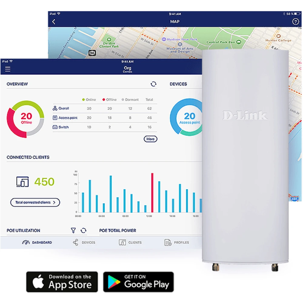 Manage your outdoor wireless network from anywhere with this Nuclias Cloud outdoor access point. Designed to give you Wi-Fi connectivity in outdoor spaces, it’s ideal for education, retail and hospitality and a great option for managed service providers. Deliver high-combined data rates of up to 1,300 Mbps2 over 2 dedicated wireless bands with the latest WPA3 wireless security.