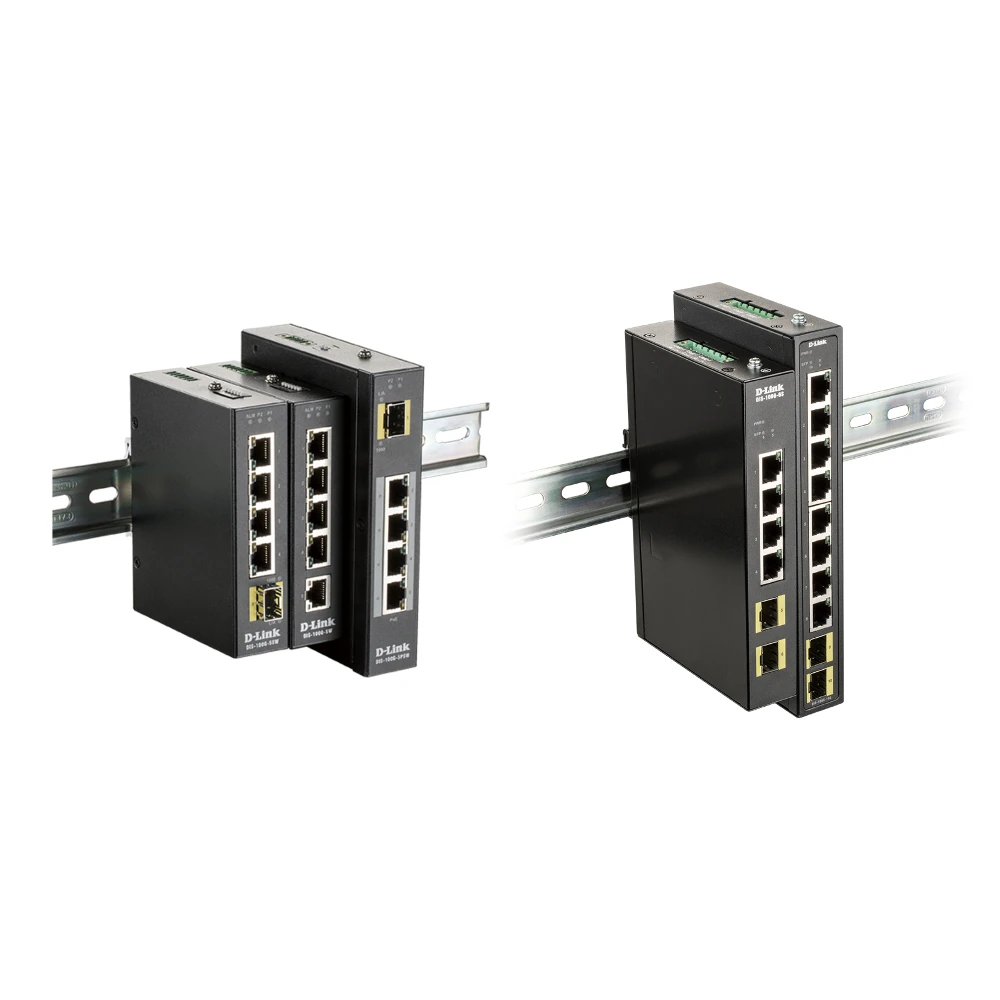 4 x 10/100/1000BASE-T, 2 x SFP, 12 Gbps, 4K MAC, 162 x 102 x 28 mm, IP40 D-Link 4-port Gigabit Industrial Switch including 2 x 100/1000M SFP. Switch type: Unmanaged. Basic switching RJ-45 Ethernet ports type: Gigabit Ethernet (10/100/1000), Basic switching RJ-45 Ethernet ports quantity: 4. MAC address table: 4000 entries, Switching capacity: 12 Gbit/s. Networking standards: IEEE 802.3, IEEE 802.3ab, IEEE 802.3u, IEEE 802.3z. DC input voltage: 12 - 48 V. Form factor: DIN rail Unmanaged Plug and Play