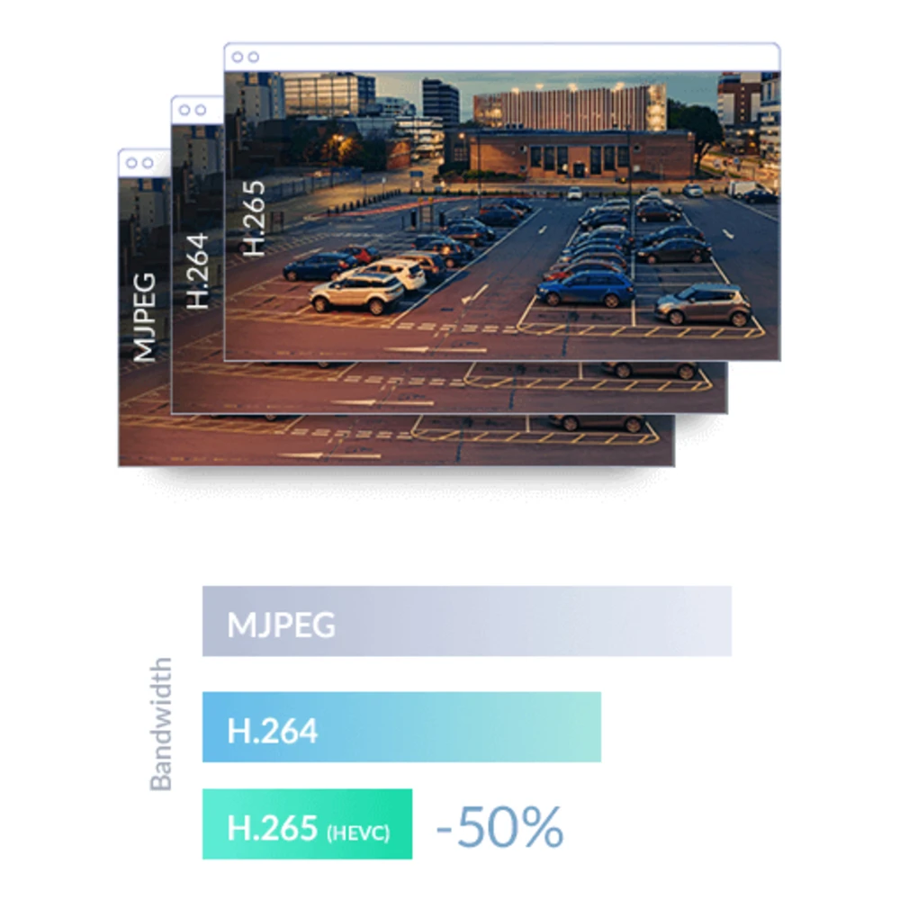 To maximise bandwidth efficiency and improve image quality, the DCS-4612EK provides real-time video compression using the H.265, H.264 and MJPEG codecs, supporting three separate profiles for simultaneous video streaming and recording.