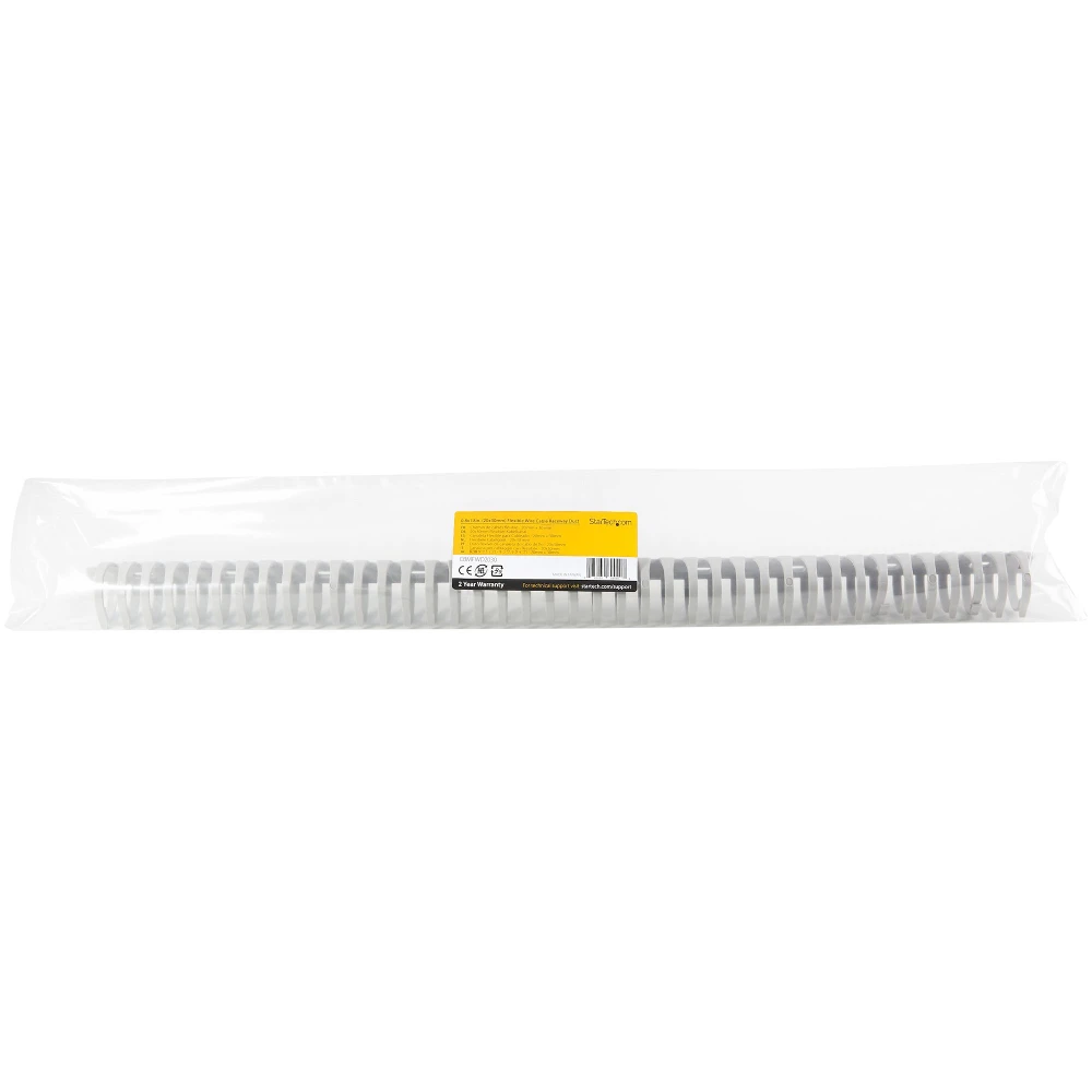 19.68 in. (50 cm) | 0.98 in. (24.9 mm) x 1.14 in. (29 mm) | Nylon 66 | UL 94V-2 Rated | TAAThis 20.6 in. (52.4 cm) flexible cable management spine/vertebrae raceway offers a flexible solution for neatly routing cables at your workstation to create a tidy and professional look.Professionally Organize & Route CablesThis cable management raceway protects cables from damage while neatly routing them. The raceway is 1 in. (25 mm) x 1.1 in. (29 mm). Featuring individual loops that makes it easy to add, remove and organize cables within the raceway.Easily Expandable with Built-in ConnectorsThe built-in raceway connectors make it easy to create long cable runs by latching several raceways together. Each raceway features mating connectors at each end, enabling you customize the length of the raceway to meet your specific application.Hassle-Free InstallationThe raceway features 0.5 in. (12.2 mm) x 0.2 in. (4.6 mm) mounting holes that enable you to easily mount the raceway to wood or drywall using screws (not included).Industrial StrengthMade from durable Nylon 66 this network/power cable router/organizer is flexible and UL/94V-2 Rated.This cable management raceway is TAA compliant and backed by a StarTech.com 2-year warranty and free 24/5 technical support. StarTech.com has been the IT professionals choice for over 30 years.The StarTech.com Advantage
