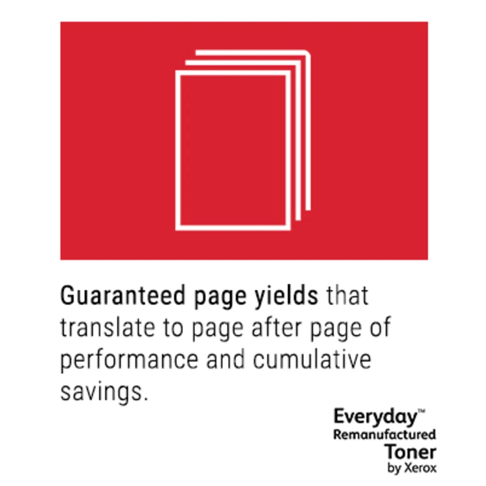 Being environmentally responsible is simply the best way to do business, because it positively impacts the health of our planet, your company and your people. Everyday Remanufactured Toner by Xerox has the lowest carbon footprint than any single-use toner cartridge. Because you shouldn't have to choose between doing your part to reduce your eco-impact and your toner costs. And compatibility with the most popular printer brands means you can enjoy benchmark Xerox quality and stewardship no matter what kind of printer you have.