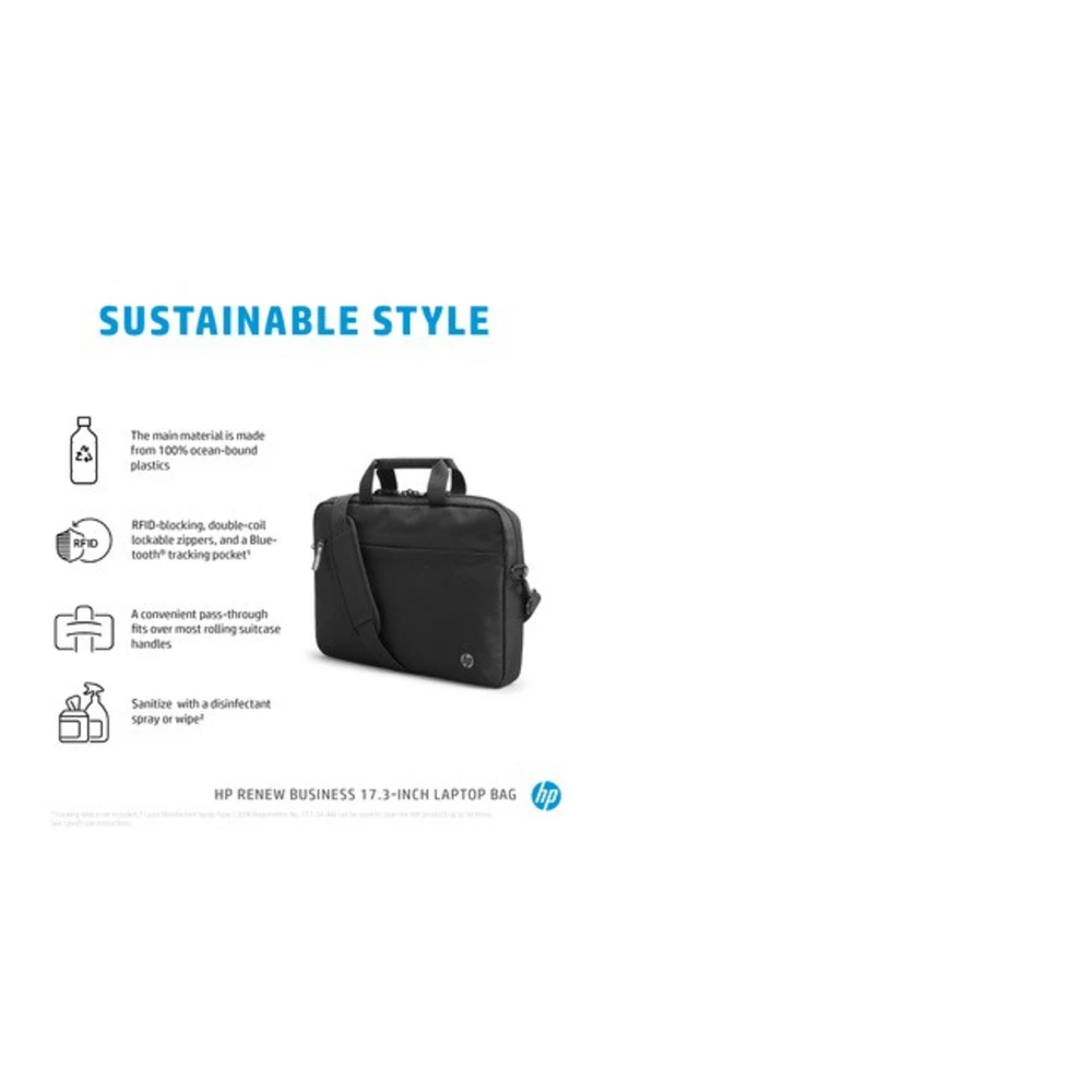 HP Renew Business 17.3-inch Laptop Bag. Case type: Briefcase, Maximum screen size: 43.9 cm (17.3"). Weight: 590 g. Surface coloration: Monochromatic