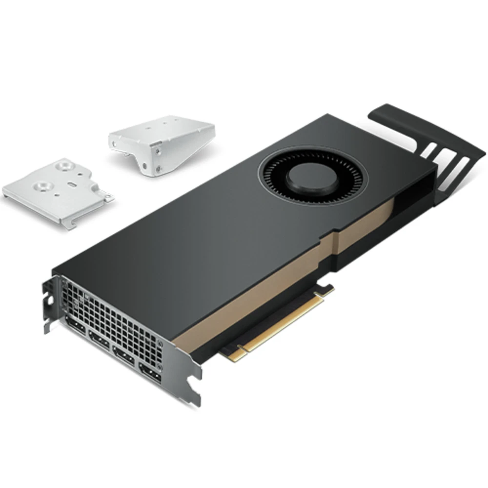 Nvidia RTX A5000 24GB GDDR6 Lenovo 4X61D97085. Graphics processor family: NVIDIA, Graphics processor: RTX A5000. Discrete graphics card memory: 24 GB, Graphics card memory type: GDDR6, Memory bus: 384 bit. Maximum resolution: 7680 x 4320 pixels. DirectX version: 12.07, OpenGL version: 4.68. Interface type: PCI Express x16 4.0. Cooling type: Active, Number of fans: 1 fan(s) The NVDIA RTX A5000 card is a dual-slot, 10.5 inch PCI Express Gen4 graphics solution based on the NVDIA Ampere architecture. It is an actively cooled product capable of 230W maximum graphics power. Based on the NVDIA GPU architecture, RTXA5000 delivers hardware-accelerated ray tracing, revolutionary AI feature, advanced shading, and powerful simulation capabilities to creative professionals. With the industry’s most expansive graphics memory footprint comprised of 24GB of GDDR6 memory, RTX A5000 enables the most graphics-intensive applications run with the highest level of user experience, even with largest of data set.