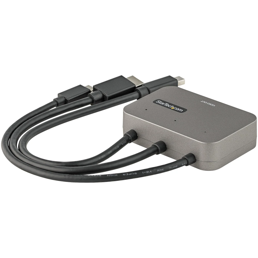 Digital AV Adapter | 4K 60Hz + HDR | 2 Channel AudioThis multiport to HDMI adapter provides multiple host options, connecting your USB-C?, HDMI? or Mini DisplayPort? device to an HDMI display. This digital AV adapter supports High Dynamic Range (HDR) and provides sharper images with enhanced video.With brighter colors and greater contrast, the adapter is ideal for:? Creating eye-catching visuals for photography, videography, cinematography? Delivering enriched presentationsSingle Adapter SolutionWith three popular input connections, this 4K HDMI AV adapter eliminates the need for multiple adapters and is compatible with the most common devices, ensuring you can connect wherever you go. The adapter can also conveniently be left connected to HDMI displays in boardrooms or conference rooms permanently, helping to reduce setup time.True 4K at 60Hz and HDRThe 3 in 1 HDMI adapter is fully compatible with HDMI 2.0b specification, supporting resolutions up to 4K 60Hz (3840 x 2160) and bandwidths up to 18Gbps. The video converter is also backward compatible with lower resolutions including HD 1080p, making it ideal for your office or home office setup.With HDR support, you can enjoy lifelike images with increased contrast, brightness and colors and greater luminosity than standard digital imaging.The adapter also outputs 2-channel audio no matter what host you're connected to, ensuring a seamless AV experience.Hassle-Free SetupTo ensure easy operation and installation, this multi connector adapter supports a plug & play setup with any OS, including macOS, Windows, Ubuntu, Chrome and Android.This multiport AV adapter is backed by a 3-year StarTech.com warranty, and free lifetime technical support.The StarTech.com Advantage