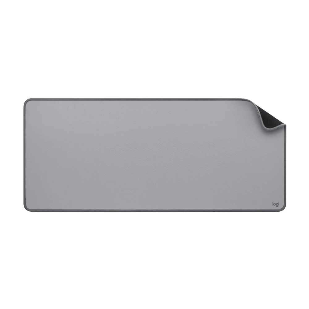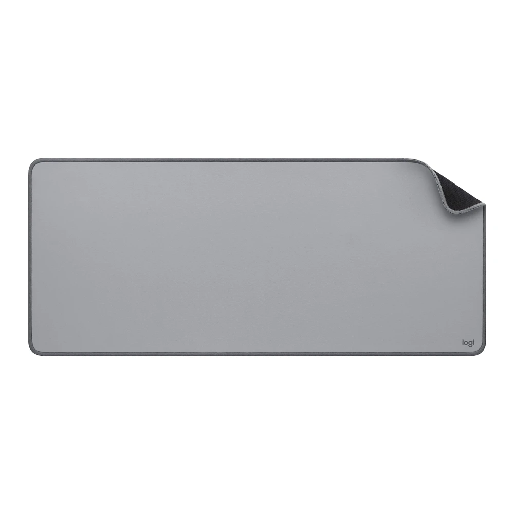 Logitech Desk Mat Studio Series. Width: 700 mm, Depth: 300 mm. Product colour: Grey, Surface coloration: Monochromatic, Material: Nylon, Polyester, Rubber, Stitched edges, Non-slip base