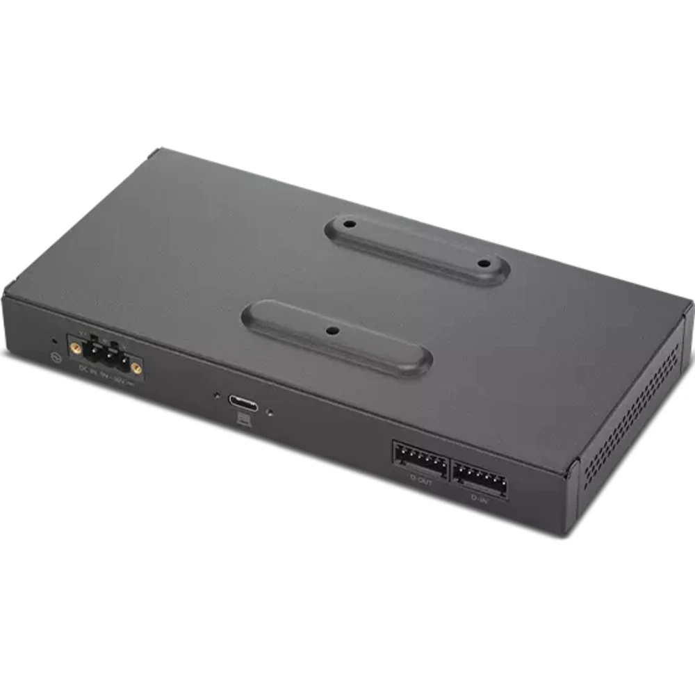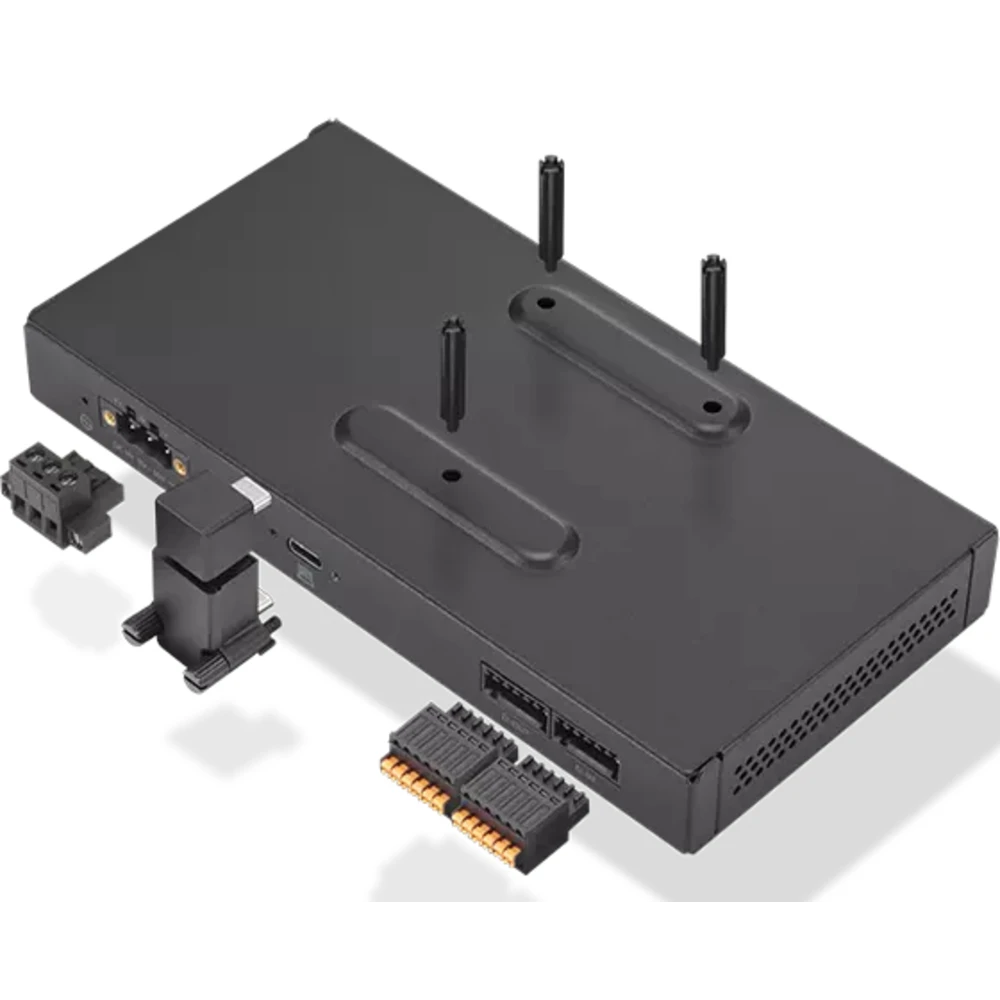 The ThinkEdge SE30 IOBOX connects to ThinkEdge SE30 via a Type-C connection, providing extra vertical IO offerings such as Power over Ethernet (PoE), Digital Input/Output, and a Serial port (RS232/422/485) offering flexibility and adaptability during Retail, Manufacturing, and Smart Building system integration. One DC cable provides voltage input to the IOBOX and PC device simultaneously, saving customers the extra burden of an AC/DC power transfer in industrial DC power supply environments.