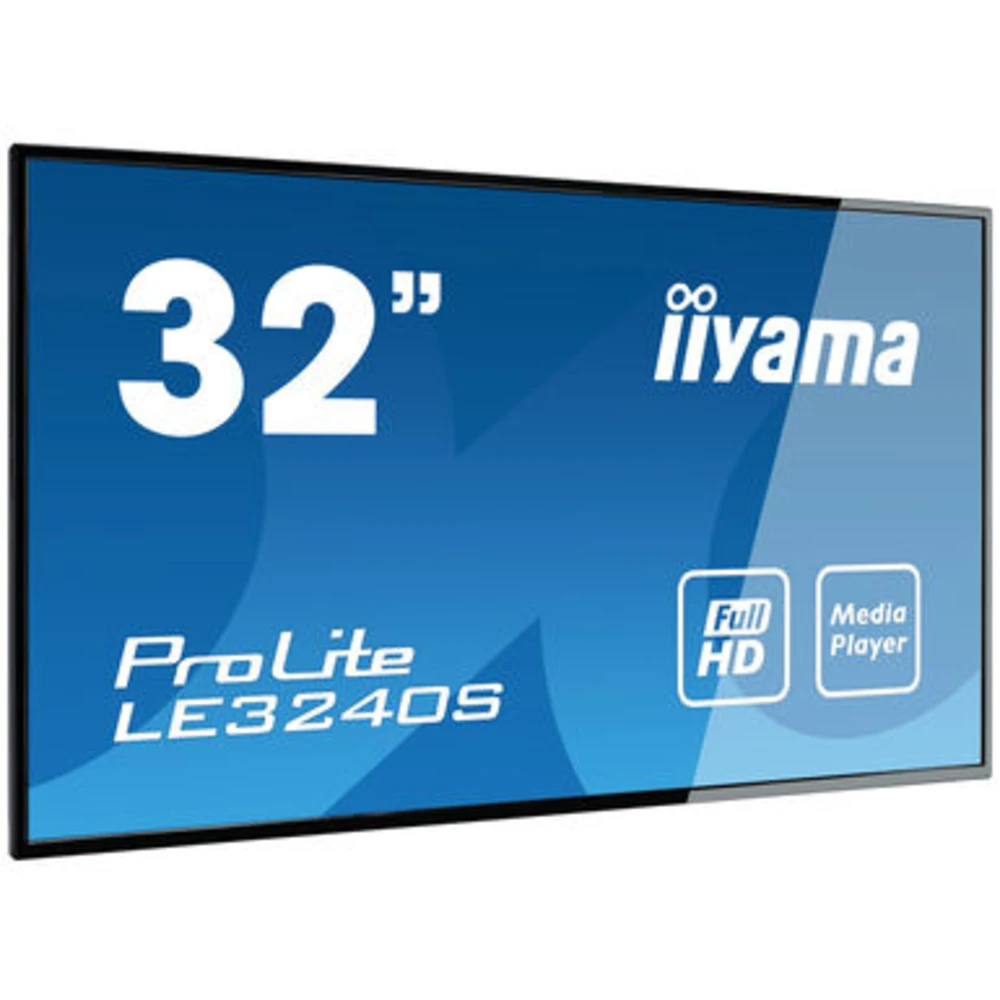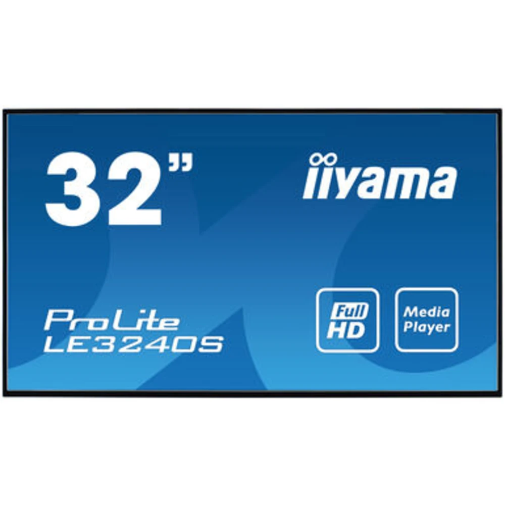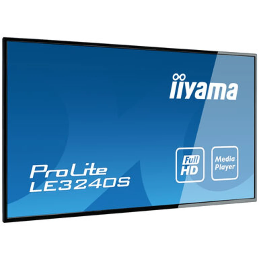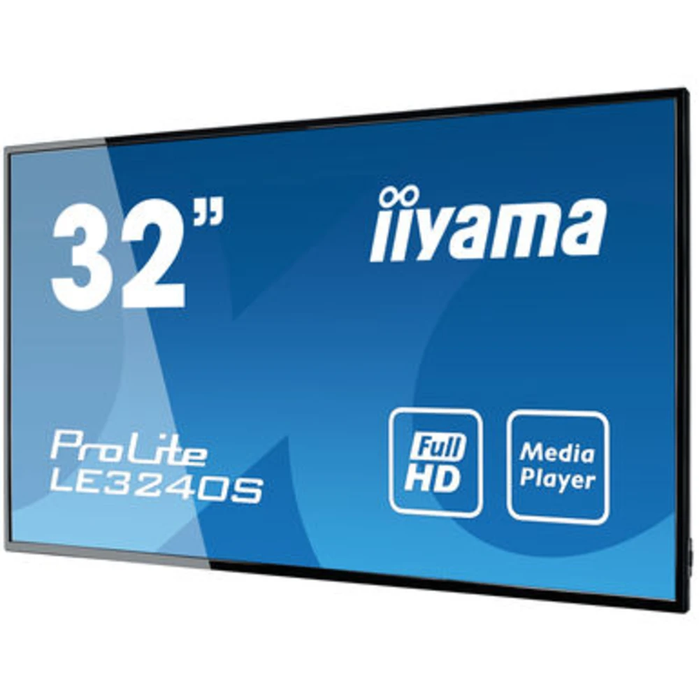 iiyama LE3240S-B3. Product design: Digital signage flat panel. Display diagonal: 80 cm (31.5"), Display technology: LED, Display resolution: 1920 x 1080 pixels, Display brightness: 350 cd/m?, HD type: Full HD. Operating hours (hours/days): 16/7. Product colour: Black