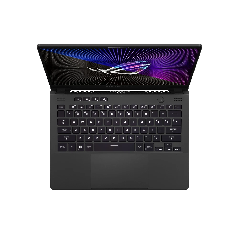 The 2022 Zephyrus G14 features a larger touchpad to match the new 16:10 aspect ratio display for responsive control. Overstroke technology triggers higher in each keystroke for faster responsiveness, and the ErgoLift design raises the keyboard at an angle to make typing more comfortable. A dazzling Prismatic sheen covers the keyboard, which provides dedicated hotkeys that put volume, microphone mute, and ROG Armoury Crate software within easy reach. The hotkeys are also fully customizable, and can be programmed to launch apps, set as a function key, or used as a macro.