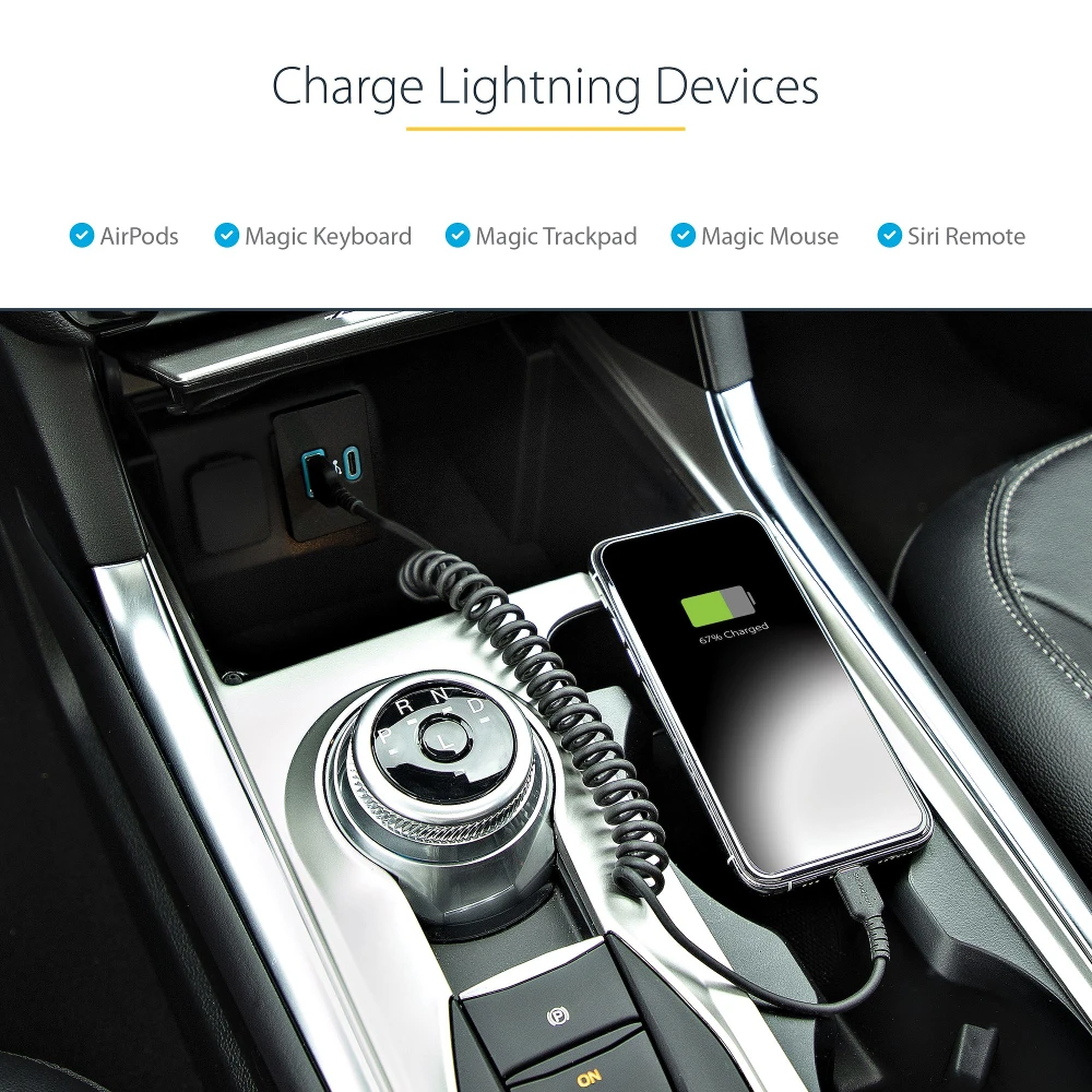 - 3.3ft (1m) Coiled USB to Lightning charging cable contracts down to 1.2ft (38cm) preventing from being tangled - Extended strain relief tested to tolerate 10000+ bend cycles at 180? angle and up to 5000 insertion cycle - Soft TPE jacket provides flexibility to the rugged cord convenient for tight connections - Apple Mfi Certified Lightning cable for fast & reliable charge/sync from USB-A charger ports - Charge Lightning devices such as iPhones, AirPods, Magic Keyboard and Magic Mouse