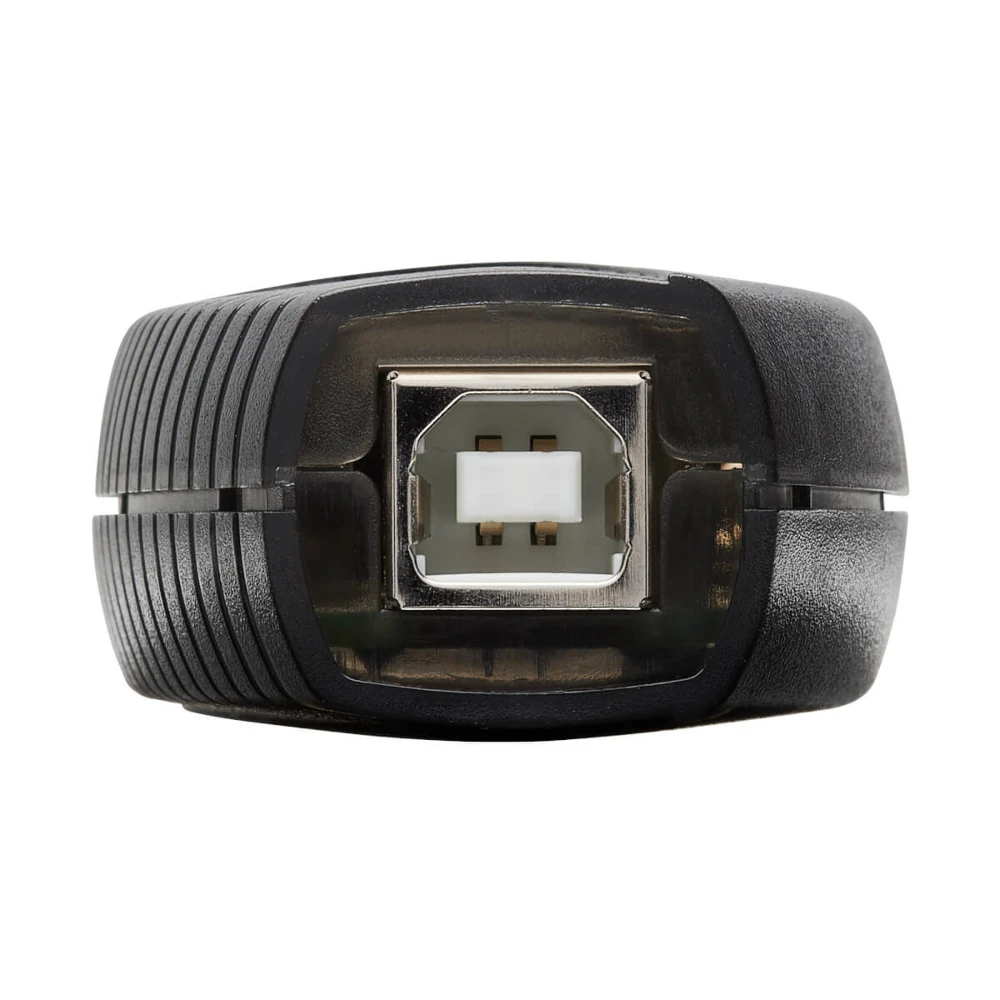 No external power supply is needed and only one connection is required. Simply connect the included three-foot (0.9-meter) USB cable between the unit's USB-B port and your computer's USB-A port. The unit is compatible with any USB cable up to 16 feet (4.9 meters). A green LED indicates data activity at a glance. The unit weighs only 2 ounces for convenient transport in a backpack or laptop bag.