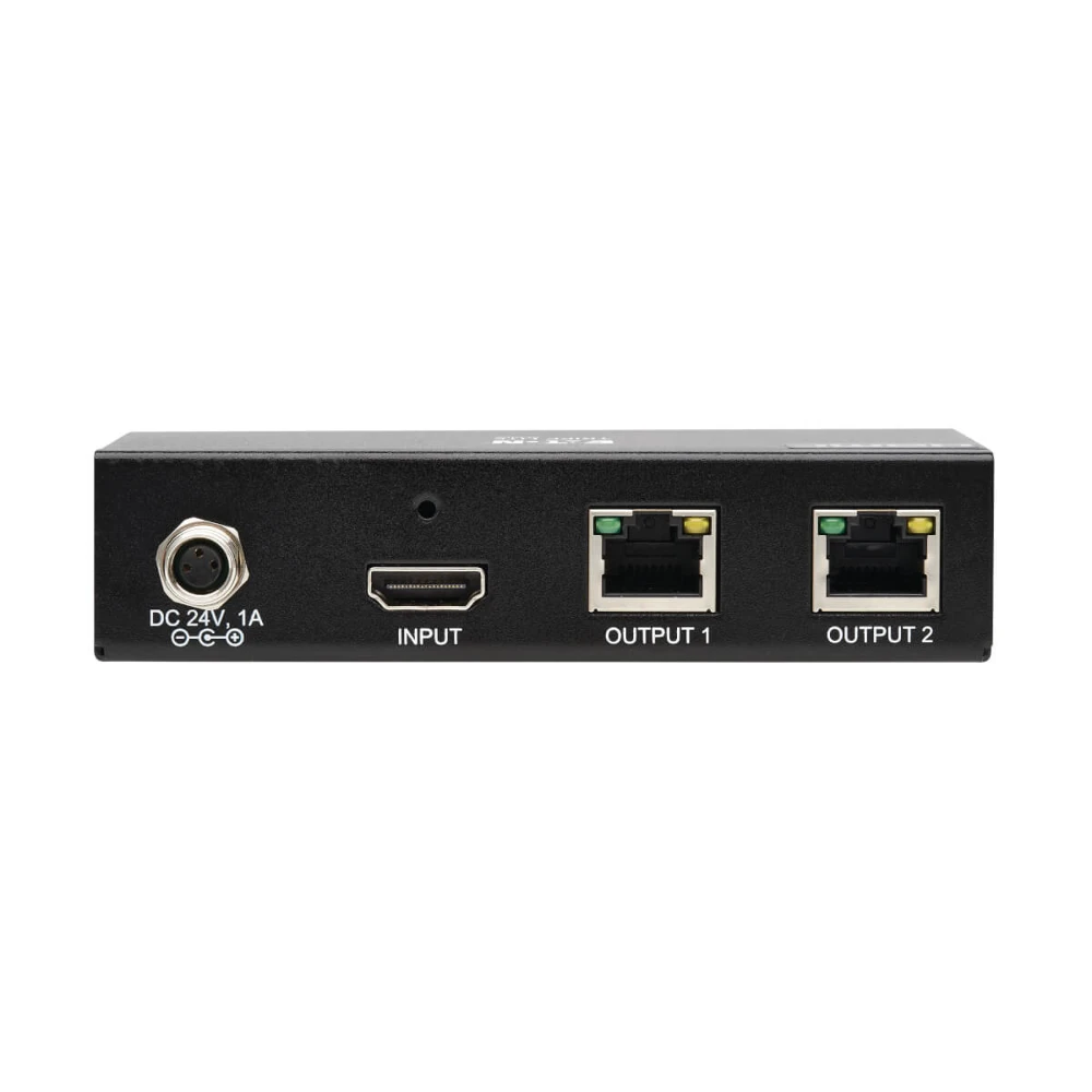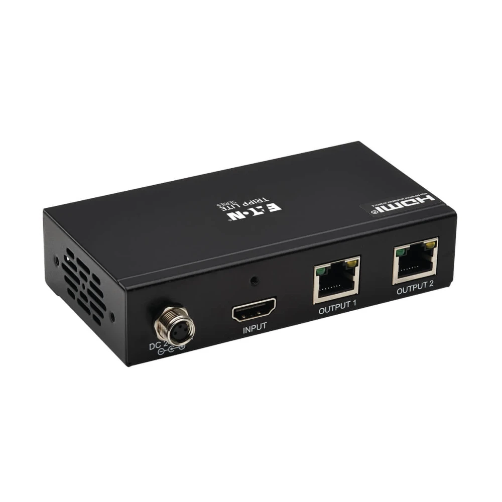 Tripp Lite B127A-002-BHPH2 2-Port HDMI over Cat6 Extender Kit, Splitter/2x Pigtail Receivers - 4K 60 Hz, HDR, 4:4:4, PoC, 230 ft. (70.1 m), TAA. Type: AV transmitter & receiver, Maximum resolution: 3840 x 2160 pixels, Cable types supported: Cat6, HDMI. Connectivity technology: Wired. AC input voltage: 100 - 240 V, AC input frequency: 50 - 60 Hz, Operating voltage: 24 V. Receiver dimensions (WxDxH): 47 x 75 x 18.6 mm, Receiver weight: 450 g, Transmitter dimensions (WxDxH): 115 x 62.4 x 27 mm. Quantity per pack: 1 pc(s), Package width: 352 mm, Package depth: 164.1 mm