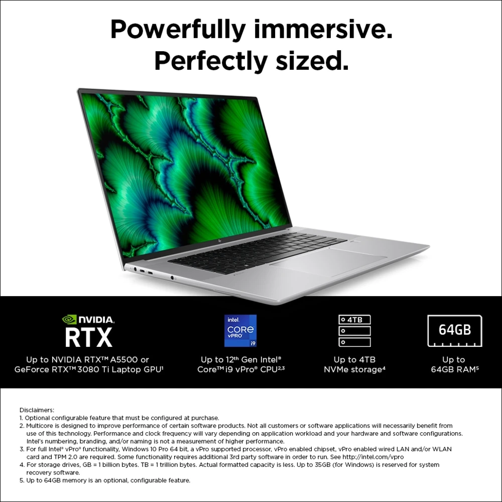 ZBook Studio 16 inch G9 Mobile Workstation PC,?16",?Windows 11 Pro (preinstalled with Windows 10 Pro Downgrade),?Intel? Core? i7,?32GB RAM,?1TB SSD,?RTX? A3000,?WUXGA HP ZBook Studio G9. Product type: Mobile workstation, Form factor: Clamshell. Processor family: Intel? Core? i7, Processor model: i7-12800H. Display diagonal: 40.6 cm (16"), HD type: WUXGA, Display resolution: 1920 x 1200 pixels. Internal memory: 32 GB, Internal memory type: DDR5-SDRAM. Total storage capacity: 1000 GB, Storage media: SSD. On-board graphics card model: Intel Iris Xe Graphics, Discrete graphics card model: NVIDIA RTX A3000. Operating system installed: Windows 11 Pro. Product colour: Grey